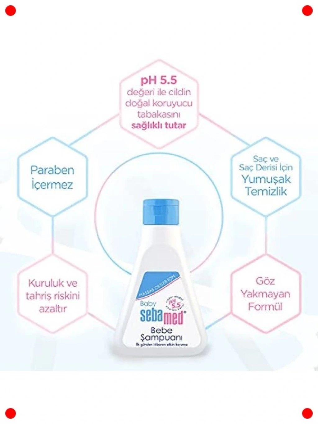 Bebeklerinizin hassas cildi ve saçları için özel olarak geliştirilmiş bu şampuan, pH 5.5 değeriyle cildin doğal koruyucu bariyerini destekler. Göz yakmayan nazik formülü sayesinde banyo zamanlarını keyifli hale getirir. Papatya özü ile zenginleştirilmiş içeriği, bebeğinizin cildini ve saç derisini nazikçe temizlerken aynı zamanda rahatlatıcı bir etki sunar. Nemlendirici özelliği ile saçların yumuşacık olmasını ve kolay taranmasını sağlar. Pediatristler tarafından test edilmiş bu şampuan, bebeğinizin sağlıklı gelişimi için güvenle kullanabileceğiniz bir üründür.