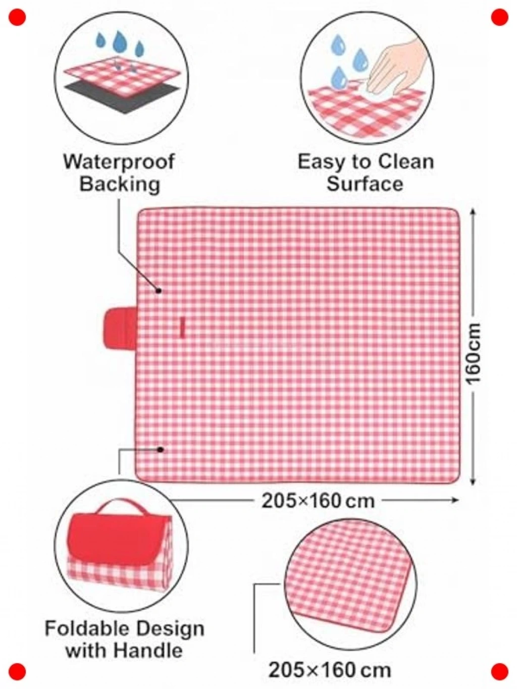 Açık hava etkinlikleriniz için vazgeçilmez bir aksesuar! 205x160 cm boyutlarındaki bu geniş piknik örtüsü, aileniz ve arkadaşlarınızla keyifli anlar geçirmeniz için yeterli alan sunar. Su geçirmez alt yüzeyi sayesinde nemli zeminlerde bile kuru ve rahat kalırsınız. Kareli şık tasarımıyla dikkat çekerken, kolayca silinebilir yüzeyi temizliği pratik hale getirir. Katlanabilir ve hafif yapısıyla az yer kaplar, taşıma sapı sayesinde rahatlıkla her yere götürülebilir. Piknikler, kamp gezileri, plaj keyfi veya bahçe partileri için idealdir.
