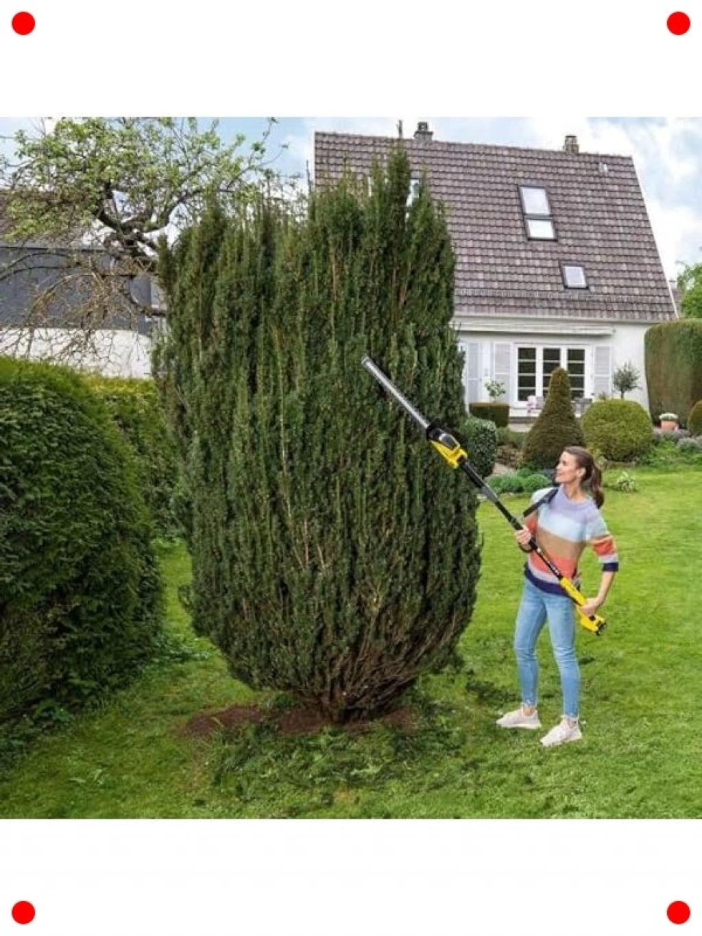 Bahçenizdeki çitleri ve çalılıkları kolayca şekillendirmek için tasarlanmış bu pilli çit makası, hafif ve kompakt yapısıyla size maksimum hareket özgürlüğü sunar. Kablolu makinelerin getirdiği kısıtlamaları ortadan kaldırarak bahçenizin her köşesine rahatça ulaşmanızı sağlar. Keskin bıçakları sayesinde hassas ve düzgün kesimler yaparak bitkilerinizin sağlıklı büyümesini destekler. Ergonomik sap tasarımı, uzun süreli kullanımlarda bile konforlu bir tutuş sağlar. Sarı rengiyle enerjik bir görünüm sunar. Bakım ve budama işlerinizi hızlı, etkili ve keyifli bir hale getiren bu çit makası, her bahçıvanın favorisi olmaya adaydır.