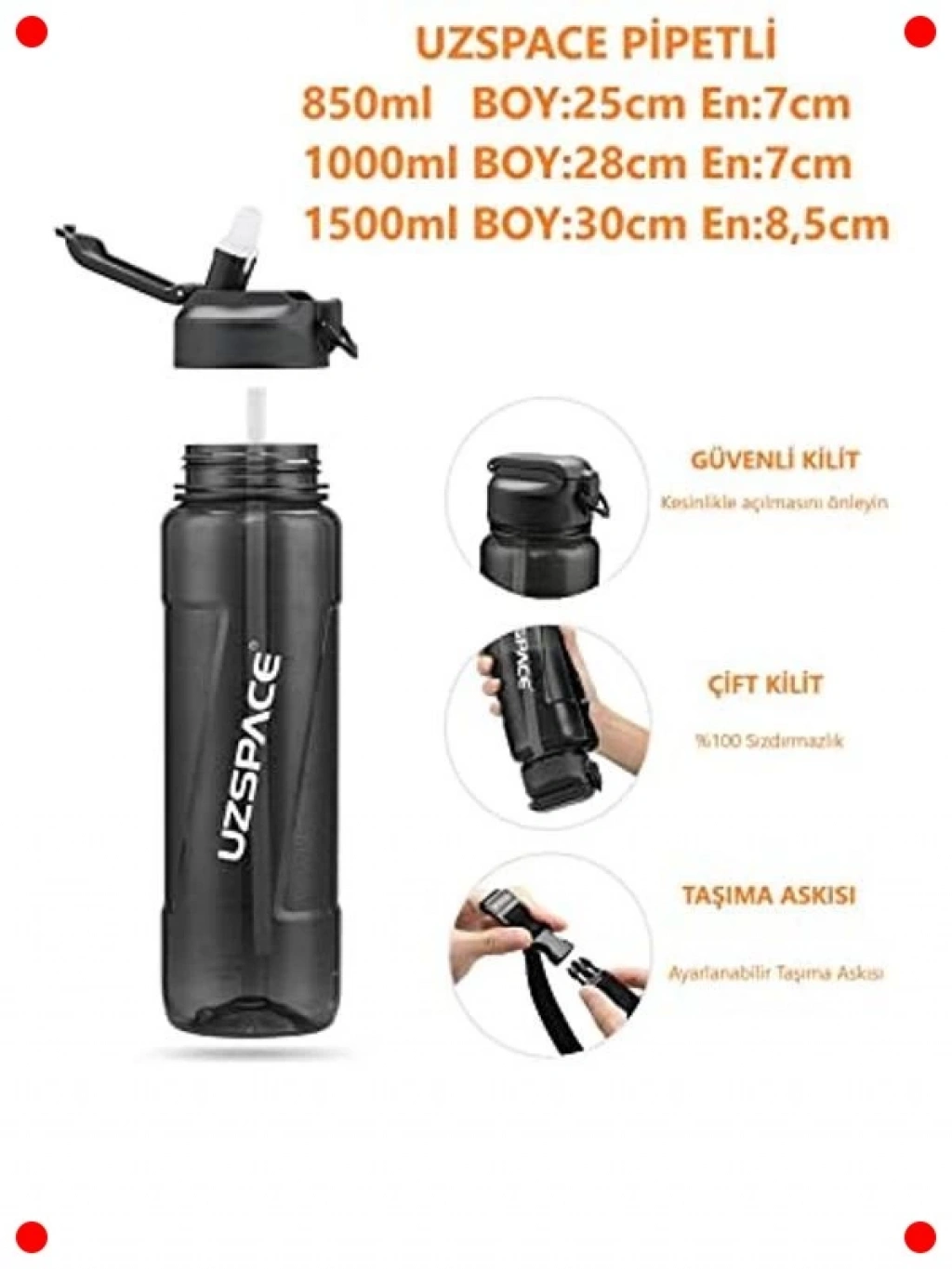 Günlük su tüketiminizi desteklemek için ideal bir seçim. 1500 ml'lik mega boy kapasitesiyle gün boyunca yeterli su almanızı sağlar. Darbelere dayanıklı ve BPA içermeyen tritan malzemeden üretilmiştir, bu sayede sağlıklı ve güvenli bir kullanım sunar. Entegre pipet sistemi sayesinde tek elle kolayca su içebilir, özellikle spor yaparken veya hareket halindeyken pratiklik kazanırsınız. Sızdırmaz kapağı ve lacivert rengiyle şık ve fonksiyonel bir taşıma arkadaşıdır.