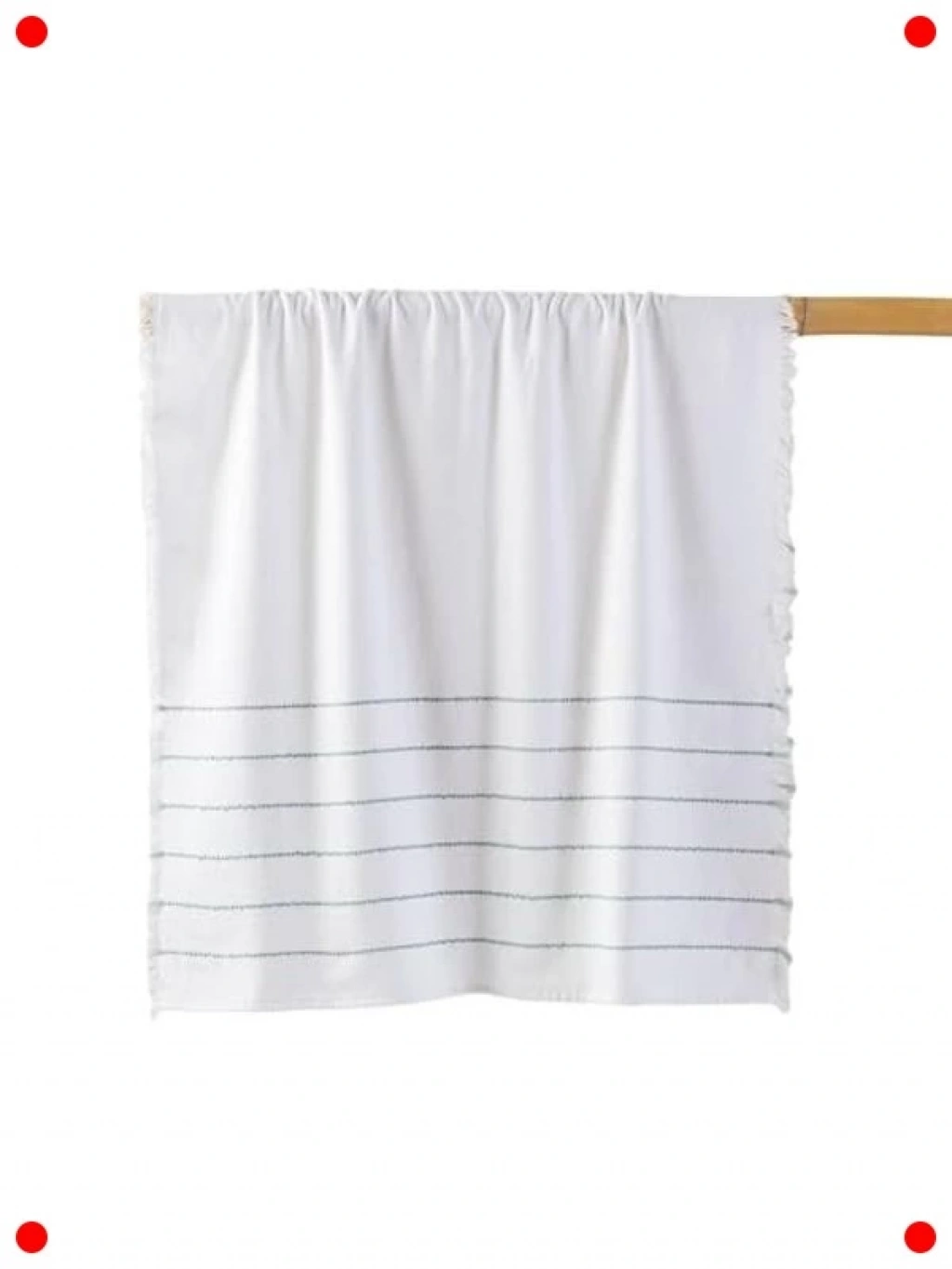 Plajda veya havuz kenarında şıklığınızı tamamlayacak ve size maksimum konfor sunacak bu plaj havlusu ile yaz günlerinin keyfini çıkarın. %100 pamuklu yapısı sayesinde cildinize narin bir dokunuş sunarken, yüksek emicilik özelliği ile sudan çıktıktan sonra anında kuruluk sağlar. 85x150 cm boyutları, tüm vücudunuzu saracak geniş bir alan sunar. Şık beyaz ve mint renk kombinasyonu, plaj stilinize ferah ve modern bir hava katar. Hafif yapısı sayesinde çantanızda kolayca taşıyabilir, hızlı kuruma özelliği ile pratik bir kullanım sunar. Kaliteli işçiliği, uzun ömürlü kullanım garantisi verir.