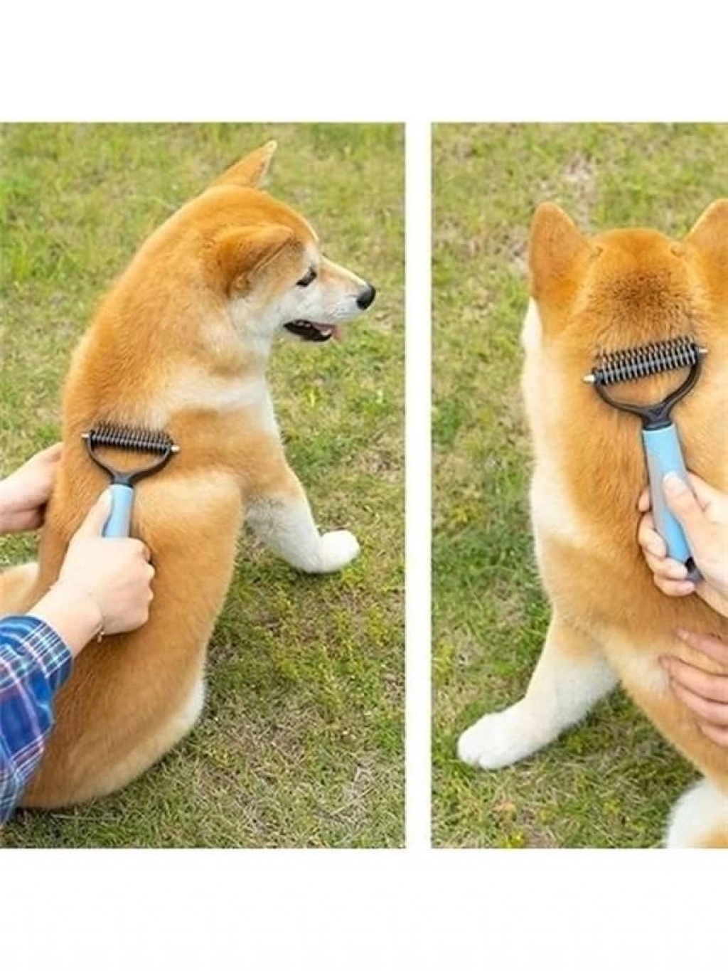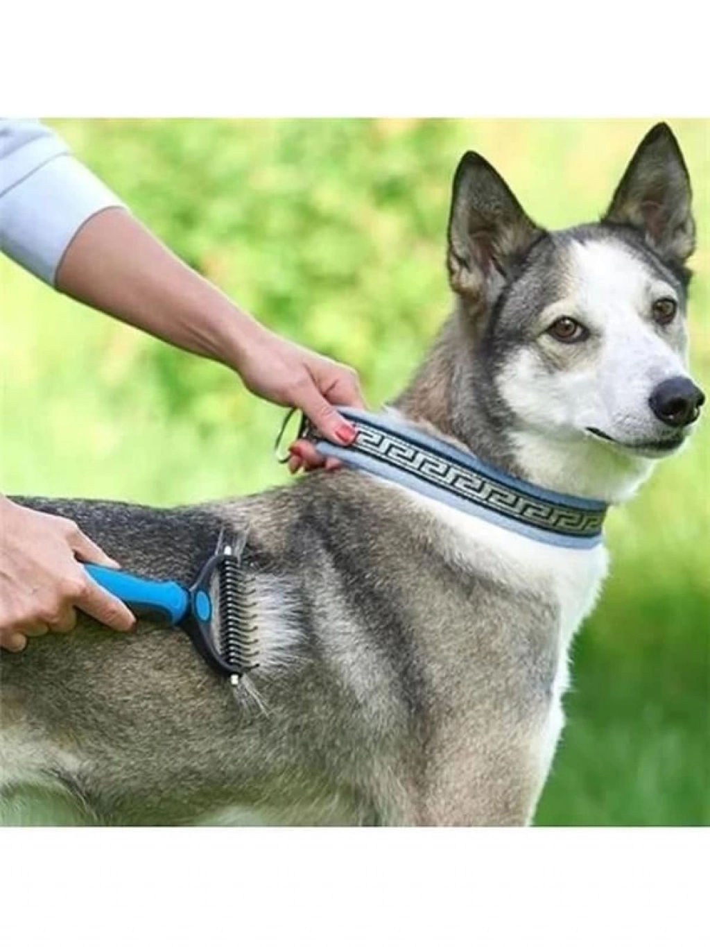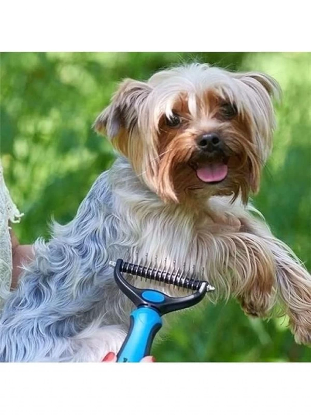 Tıraş makineli köpek tarağı, entegre bıçak, çift fonksiyonlu, iki boyutta plastik dişler