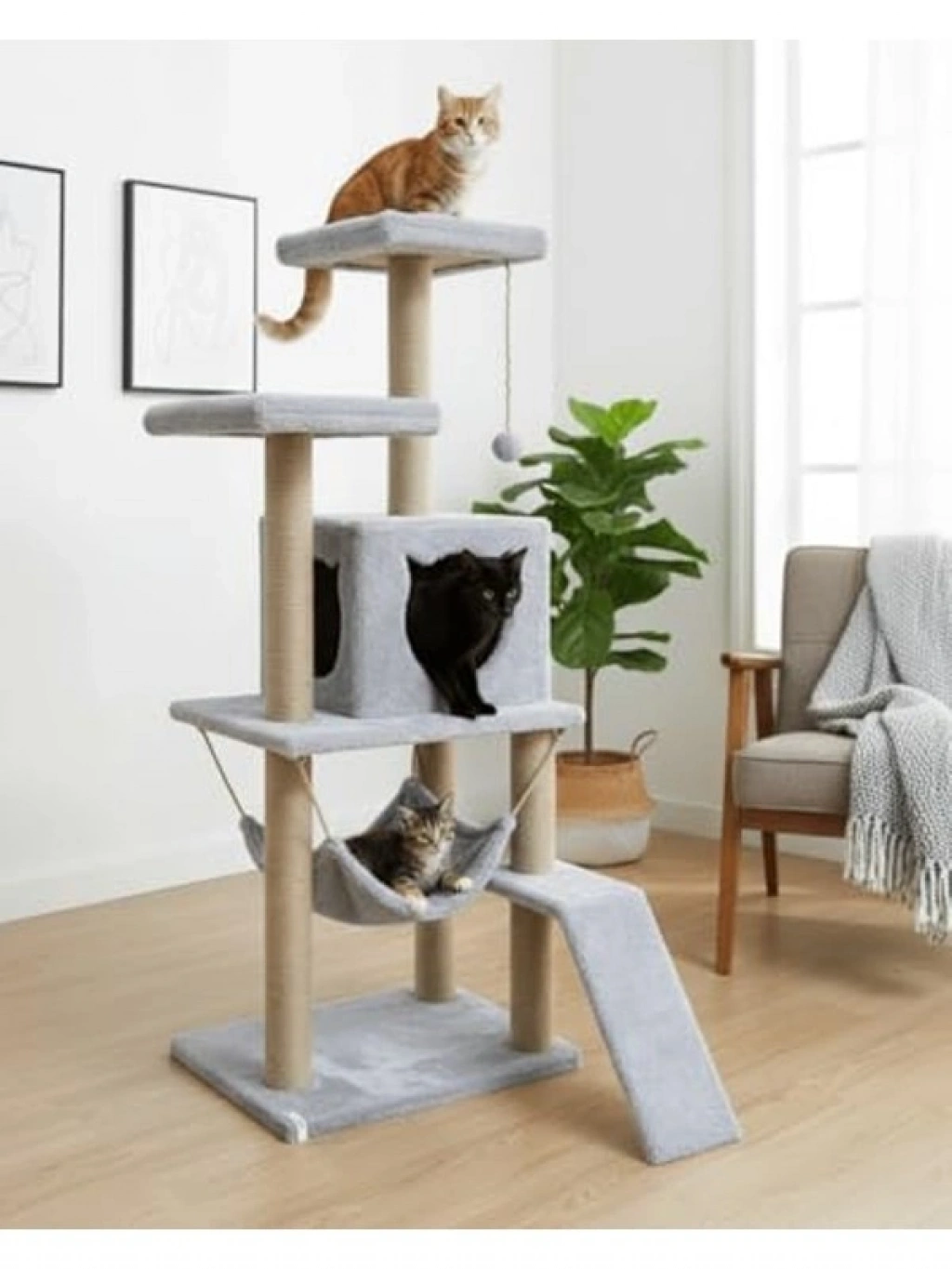 Platformlu gri kedi tırmalama kulesi, 35 cm x 50 cm zemin ölçüsüyle geniş bir alan sunar. 135 cm yüksekliği sayesinde, kedinizin tırmalama ihtiyacını doğru yerde karşılar. Antibakteriyel welsoft kumaş, rahat bir alan sağlar ve kolayca temizlenir.