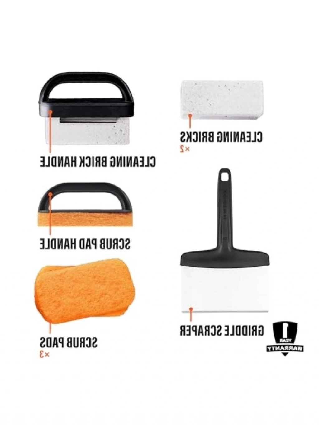 Bu profesyonel ızgara temizleme seti, 8 parçadan oluşur ve yüksek kalitede malzemelerle üretilmiştir. Paslanmaz çelikten yapılan 6 inç kazıyıcı, 3 ovma pedi ve 2 temizleme tuğlası ile birlikte gelir. Tüm aletler, hızlı ve etkili bir şekilde ızgaraların temizlenmesi için idealdir. Uzun ömürlü ve dayanıklı yapısıyla, hem amatör hem de profesyonel kullanıcılar için mükemmel bir seçimdir.