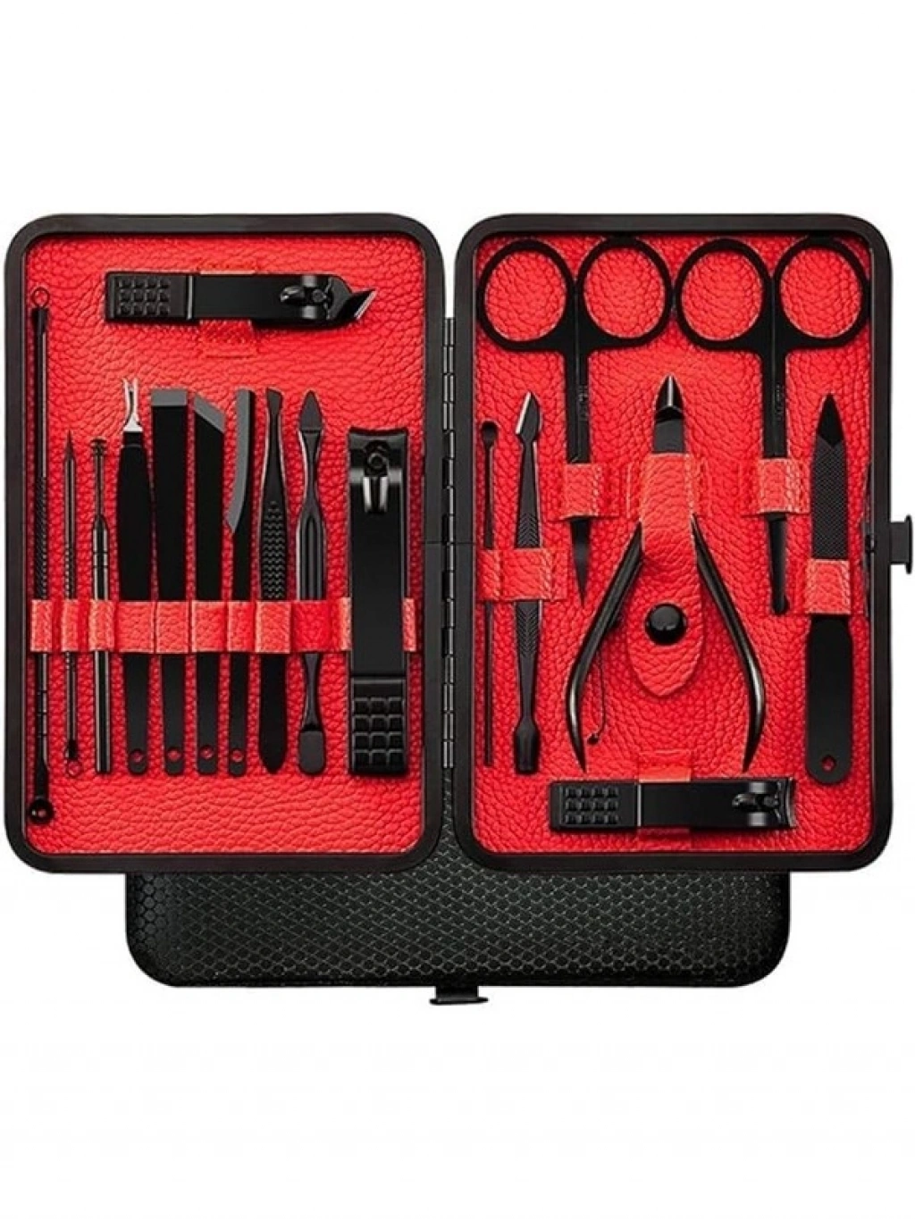 7 parçadan oluşan bu premium kalitedeki manikür pedikür seti, tırnak makası, tırnak törpüsü, kütikül makası, cımbız ve diğer bakım araçlarını içerir. Paslanmaz çelik malzemesi ile uzun ömürlü ve hijyenik bir kullanım sunar. Hem erkekler hem de kadınlar için uygun olan bu set, evde profesyonel salon kalitesinde bakım imkanı sağlar. Şık siyah suni deri kılıfında düzenli bir şekilde saklanabilir, seyahatler için idealdir.