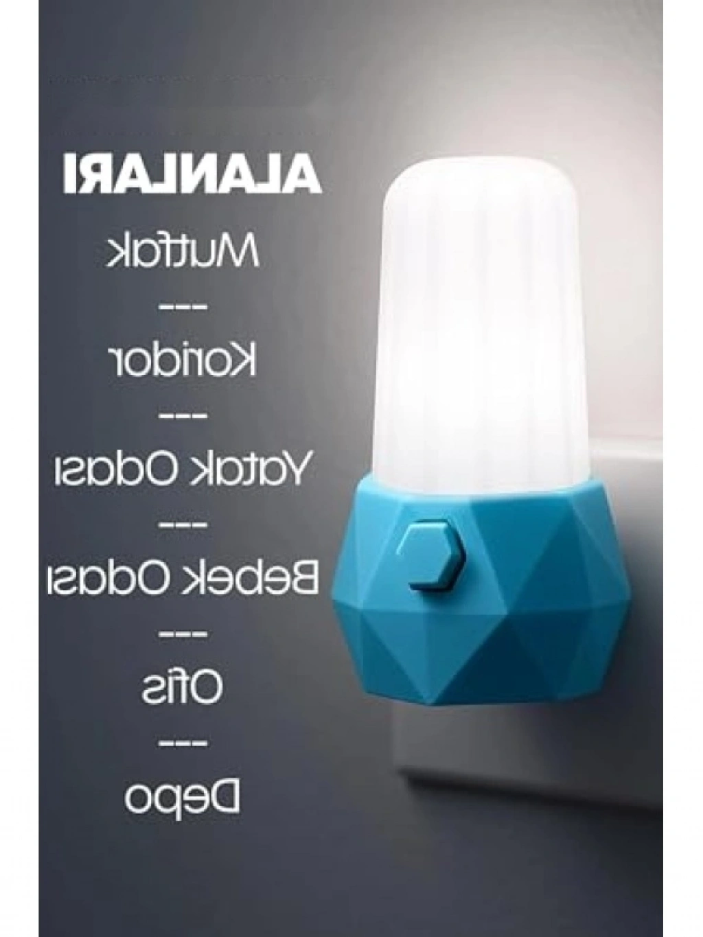 Mavi renkli prizma şekline sahip bu gece lambası, yatak odası ve çocuk odaları için mükemmel bir aydınlatma çözümüdür. Yumuşak ve göz yormayan ışık yayarak rahat bir uyku ortamı oluşturur. Modern ve şık tasarımı ile her ortama estetik bir görünüm kazandırırken, kompakt boyutu sayesinde istediğiniz yere kolayca yerleştirilebilir. Yatak odası, oturma odası veya koridor gibi farklı alanlarda kullanılabilir.