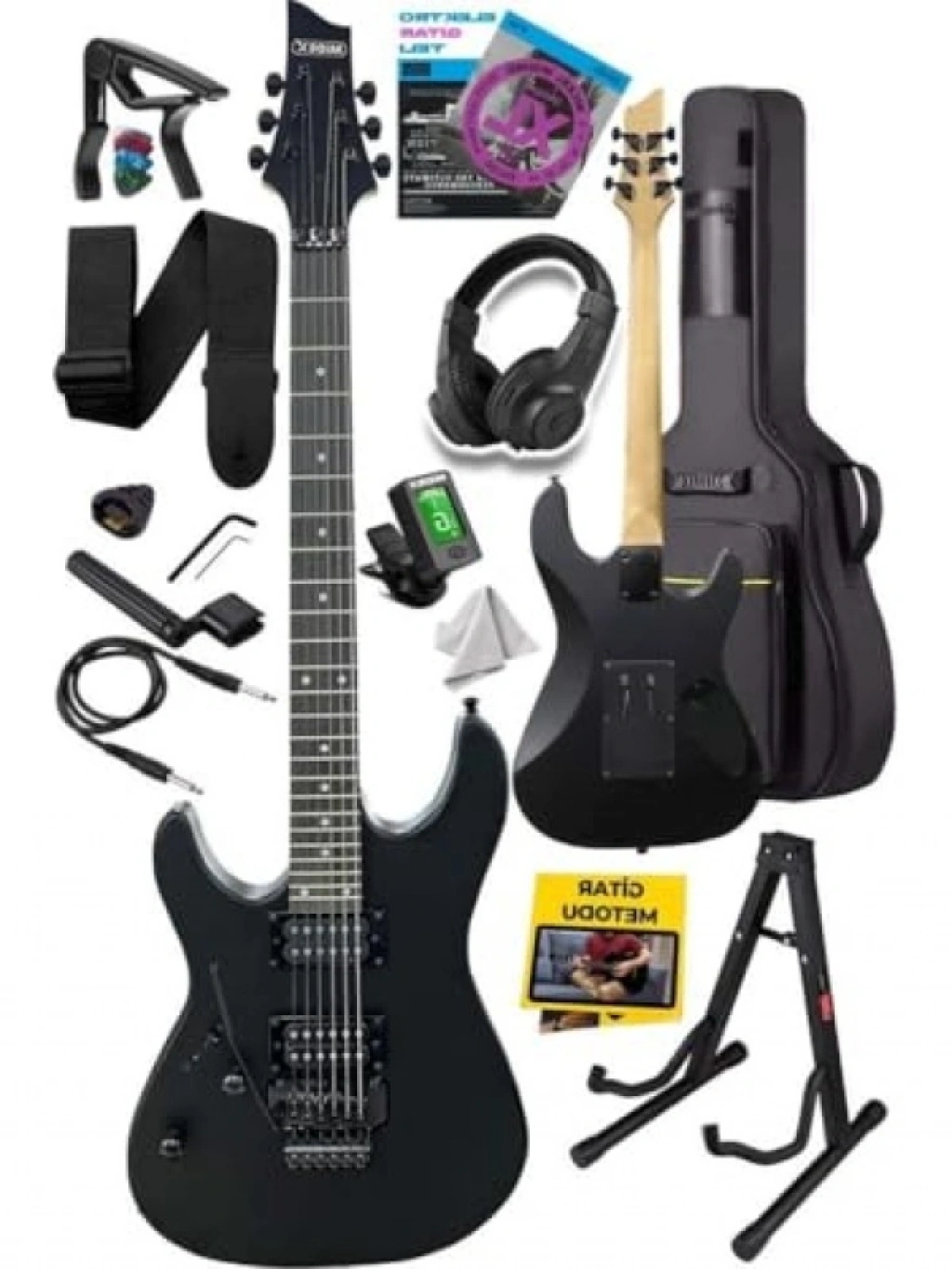 Bu elektro gitar seti, akçaağaç gövdesi ve humbucker manyetikleri ile mükemmel bir ton kalitesi sunar. Jatoba ağacı ve gül ağacı detayları ile estetik bir görünüme sahip. Yüksek kaliteli malzemeleri sayesinde hem dayanıklı hem de şık bir enstrümandır. Müzikal performanslarınızda dikkat çekici bir ses deneyimi yaşayın.