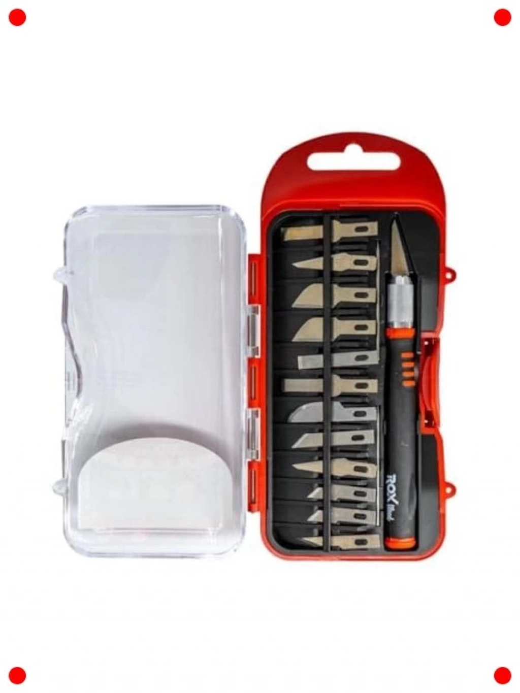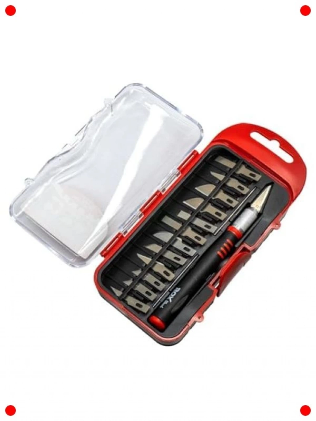 Hassas kesim gerektiren tüm hobi, maket ve el işi projeleriniz için özel olarak hazırlanmış 15 parçalık bu bıçak seti, yaratıcılığınızın sınırlarını zorlamanıza yardımcı olur. Ahşap, kağıt, karton, kumaş, ince plastik ve deri gibi birçok farklı malzemede detaylı kesimler yapabilmenizi sağlayan çeşitli tipte keskin bıçaklar içerir. Ergonomik tasarımlı sapları, uzun süreli kullanımlarda bile rahat bir kavrama ve üst düzey kontrol sunar. Farklı kalınlıklarda ve şekillerde bıçaklar sayesinde her türlü detayı işleyebilirsiniz. Tüm parçalar, düzenli ve güvenli bir şekilde saklanabilen özel bir kutuda gelir. Sanatsal projeleriniz için mükemmel bir seçimdir.