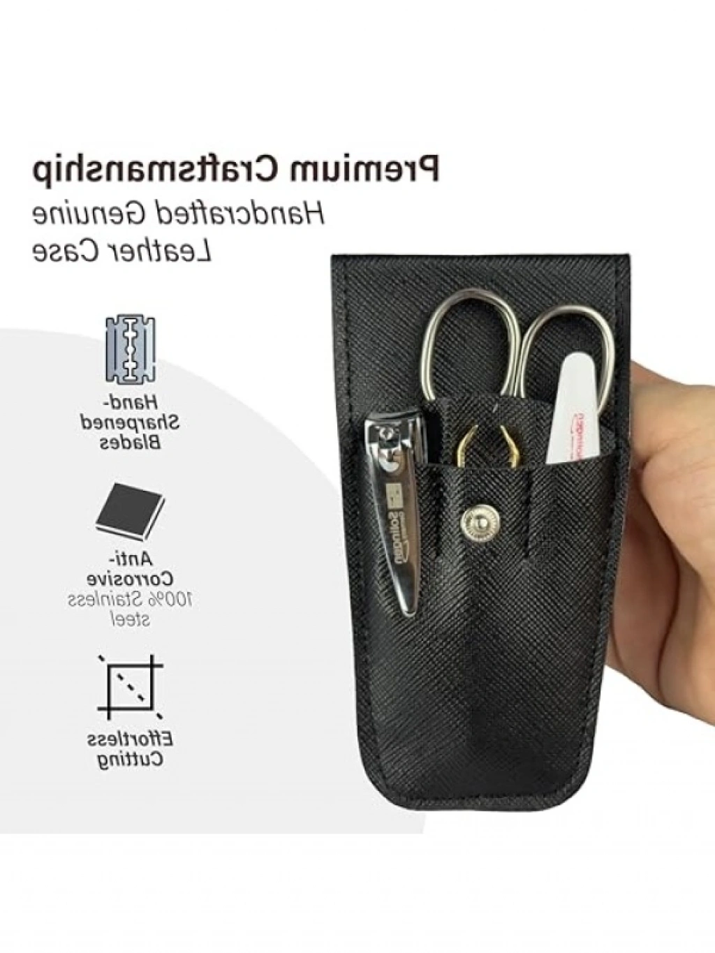 Bu yüksek kaliteli manikür seti, 1 adet cımbız, 1 adet manikür makası, 1 adet et pensesi ve 1 adet törpü içermektedir. Her bir alet, profesyonel bir manikür deneyimi sunmak üzere tasarlanmıştır. Kolay taşınabilir ve pratik yapısıyla her zaman yanınızda bulundurabilirsiniz. Kendi evinizin konforunda mükemmel tırnak bakımını sağlamak için ideal bir settir.