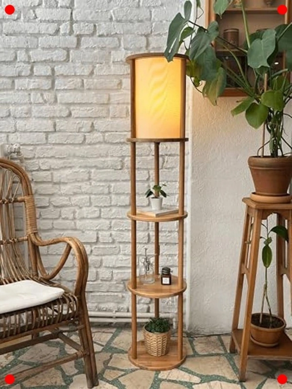 Bu çok fonksiyon raflı lambader ile hem aydınlatma hem de depolama ihtiyacınızı karşılayın. 3 katlı ahşap rafları sayesinde kitaplarınızı, dekoratif objelerinizi veya lerinizi sergileyebilir, yaşam alanınıza düzen ve şıklık kbilirsiniz. Keten abajuru ile yaydığı yumuşak ışık, odanızda huzur ve sıcak bir atmosfer yaratır. Masif ahşap yapısı uzun ömürlü ve sağlam bir kullanım sunar. Modern ve nimalist tasarımı, her türlü iç mekan dekorasyonuna kolayca uyum sağlar. Oturma odası, yk odası veya çalışma odası için ideal bir tamamlayıcıdır.