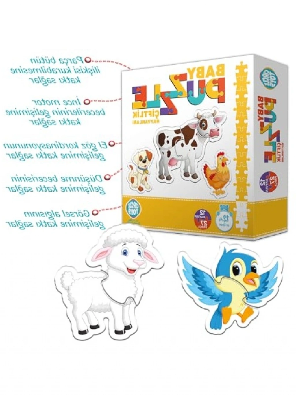 Bu eğlenceli çiftlik hayvanları puzzle, çocukların düşünme becerilerini ve motor kas gelişimini destekler. Renkli tasarımı ile dikkat çeken bu ürün, görsel algıyı ve el-göz koordinasyonunu geliştirmeye yardımcı olur. Eğlenceli bir oyun aracı olan bu puzzle, çocukların sosyal becerilerini de güçlendirebilir.