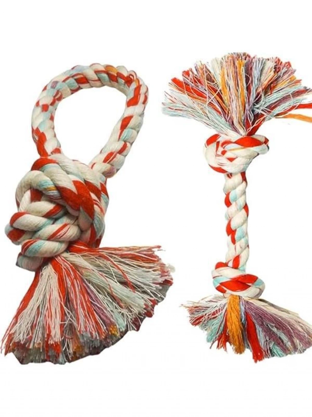 Bu ürün hakkında 2 PARÇA RENKLİ OYUN HALATI SETİ Yavrularınızla ve küçük ırk köpeklerinizle etkileşimli oyun zamanı için mükemmel olan bu köpek düğümü oyuncağı her iki ucunda sağlam bir düğümle tamamlanmıştır bu da atmayı yakalamayı ve taşımayı kolaylaştırır ve halat çekme oynamak için idealdir 100 DOĞAL PAMUK Bu premium köpek ipi oyuncağı Yerli 100 doğal renklendirilmiş pamuktan üretilmiştir bu da onu güvenli ve toksik olmayan bir çiğneme oyuncağı ve en iyi arkadaşınızla oynamak için dayanıklı bir oyun halatı yapar TAŞIMA VE ÇEKME Köpeğinizin dişlerini temizlemenin eğlenceli yolu Pamuklu köpek ipi lifleri köpeğinizin dişlerini çiğnerken ve oynarken dişlerini temizler bu nedenle günlük çekiş köpeğinizin ağız sağlığının korunmasına yardımcı olur GÜVENLİ TEK OYUN Etrafta olmadığınızda evcil hayvanınızı meşgul edin köpekler için bu pamuklu çiğneme oyuncağı güvenli ve tatmin edici bir çiğneme ipi ile agresif çiğnemeleri mobilyalarınızdan uzak tutmanın harika bir yoludur PAKET İÇERİĞİ 1 Adet İki Düğümlü Oyun Ve Çiğneme Halatı 25 CM 1 Adet Tek Düğümlü Çember Oyun Ve Çiğneme Halatı 25 CM