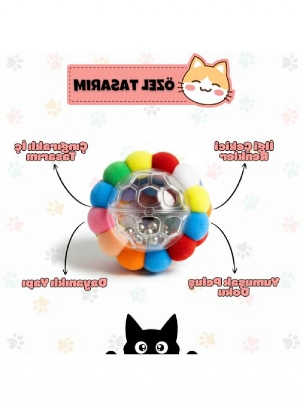 Bu interaktif peluş top, kedinizin dikkatini çekmek için tasarlanmıştır. İçerisindeki zil, kedinizin avcılık içgüdüsünü harekete geçirir. Yumuşak yapısı sayesinde çiğneme ve tırmalama için uygundur. Hafif tasarımı ile kedinizin istediği yere taşıyabileceği, eğlenceli bir oyundur. Çapı yaklaşık 7 cm olan bu oyuncak, günlük oyun rutinleri için idealdir.