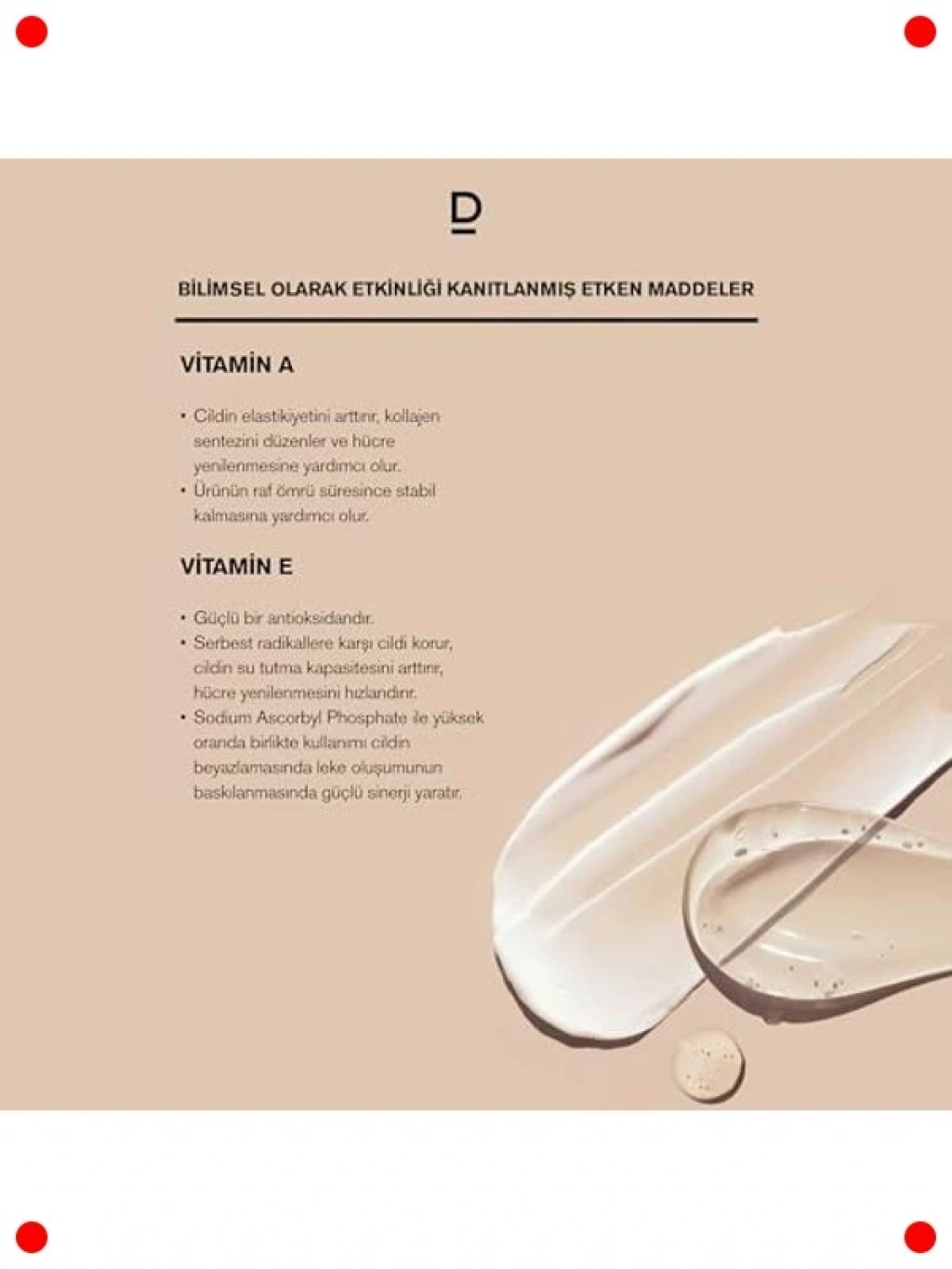 Bu etkili yüz serumu, cildinizi yeniden canlandırmak ve gençleştirmek için özel olarak formüle edilmiştir. İçeriğindeki güçlü retinil bileşeni sayesinde ince çizgi ve kırışıklıkların görünümünü gözle görülür şekilde azaltmaya yardımcı olur. Cildin doğal kolajen üretimini aktif olarak destekleyerek daha sıkı ve elastik bir cilt yapısı sunar. Düzenli kullanımda cilt tonunu eşitlemeye, güneş lekeleri ve yaşlılık belirtilerinin görünümünü hafifletmeye, cildin genel dokusunu iyileştirmeye katkıda bulunur. Cildinize anında ışıltı katarken, pürüzsüz, yenilenmiş ve gençleşmiş bir his bırakır. Geceleri temiz cildinize birkaç damla uygulayarak sabahları daha parlak ve canlı görünen bir cilde uyanın. Hassas ciltler dahil tüm cilt tipleri için uygundur.