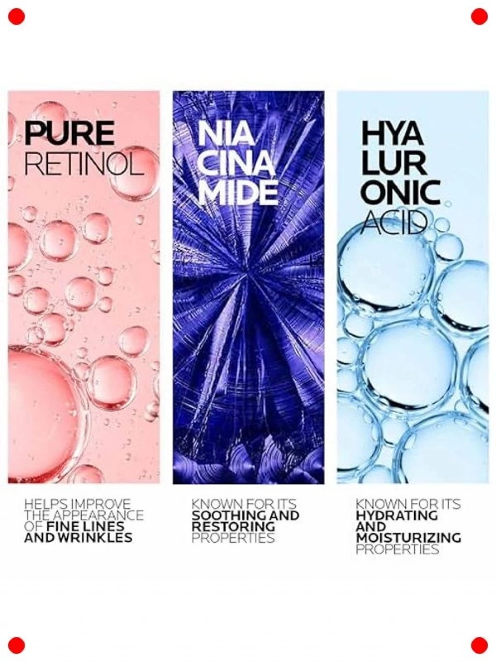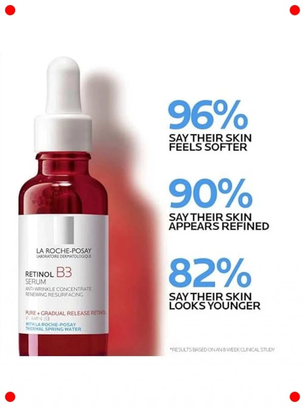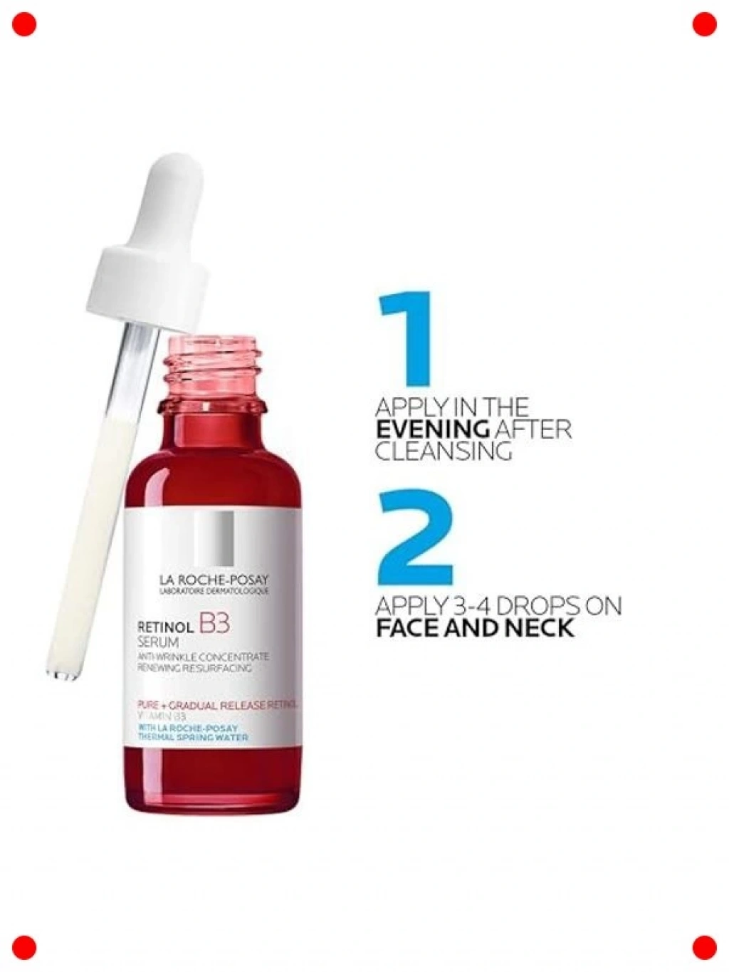 Cilt yaşlanması belirtileri ve kusurlarıyla mücadele eden bu etkili retinol B3 serumu ile cildinizi yenileyin. Saf retinol içeriği, ince çizgi ve kırışıklık görünümünü azaltmaya yardımcı olurken, B3 vitamini (Niasinamid) cildi yatıştırır ve bariyerini güçlendirir. Cilt tonunu eşitlemeye, lekelerin görünümünü azaltmaya ve genel cilt dokusunu iyileştirmeye destek olur. Hassas ciltler dahil tüm cilt tipleri için uygun, dermatolojik olarak test edilmiş formülüyle cildinize pürüzsüz, parlak ve genç bir görünüm kazandırır.