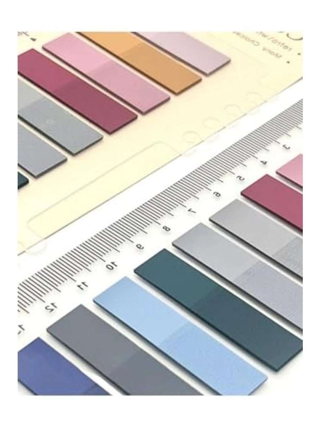 Retro tarzda, koyu tonlarda tasarlanmış şeffaf pet indeks sticker seti, 10 farklı renkten oluşur. Her bir sticker, projelerinizi düzenlemekte ve kişiselleştirmekte size büyük kolaylık sağlar. Estetik görünümüyle notlarınızı daha da çekici hale getirir.