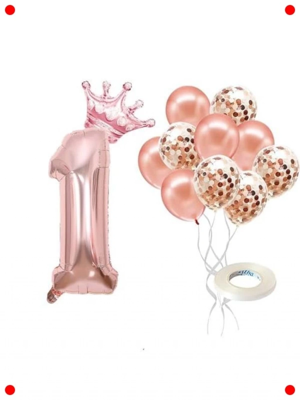 Özel günlerinizi unutulmaz kılacak bu zarif rose gold folyo balon seti ile kutlamalarınıza ışıltı katın. Set içerisinde, yaş dönümlerini veya önemli tarihleri vurgulamak için ideal olan büyük "1" rakam folyo balon, partiye kraliyet havası katacak şık bir taç balonu ve kutlamalarınıza neşe katacak konfetili balonlar bulunmaktadır. Rose gold rengi, her türlü dekorasyona modern ve sofistike bir dokunuş ekler. Helyum veya hava ile kolayca şişirilebilir, böylece hızlı ve pratik bir şekilde partinizi süsleyebilirsiniz. Özellikle ilk yaş günü kutlamaları ve yıldönümleri için mükemmel bir görsel şölen sunar.