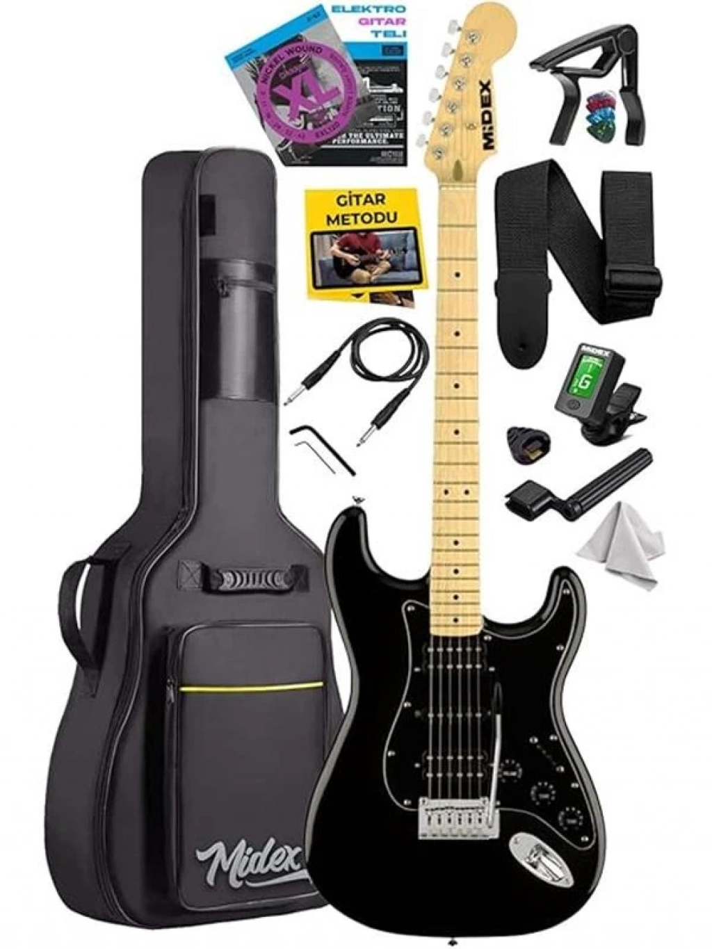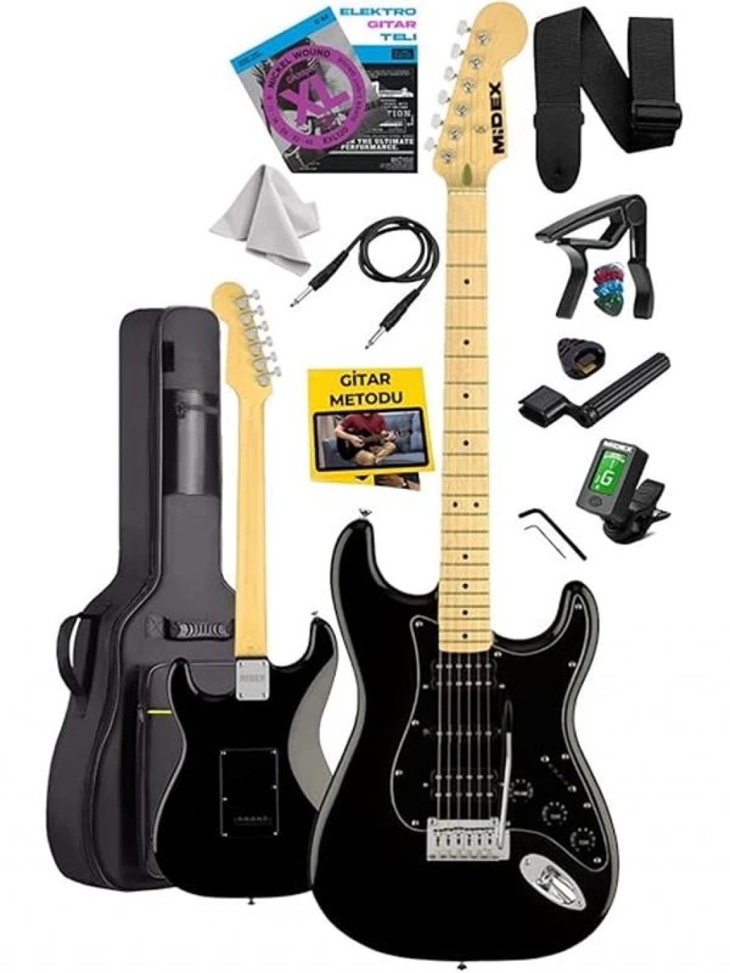 Bu ürün hakkında RPH40BK Full Black Elektro Gitar Seti HSH Manyetik Gül Klavye