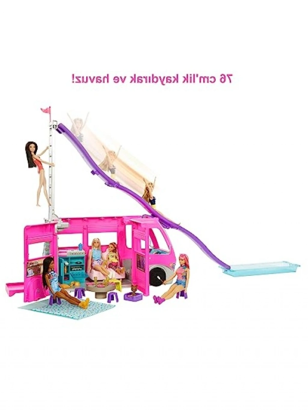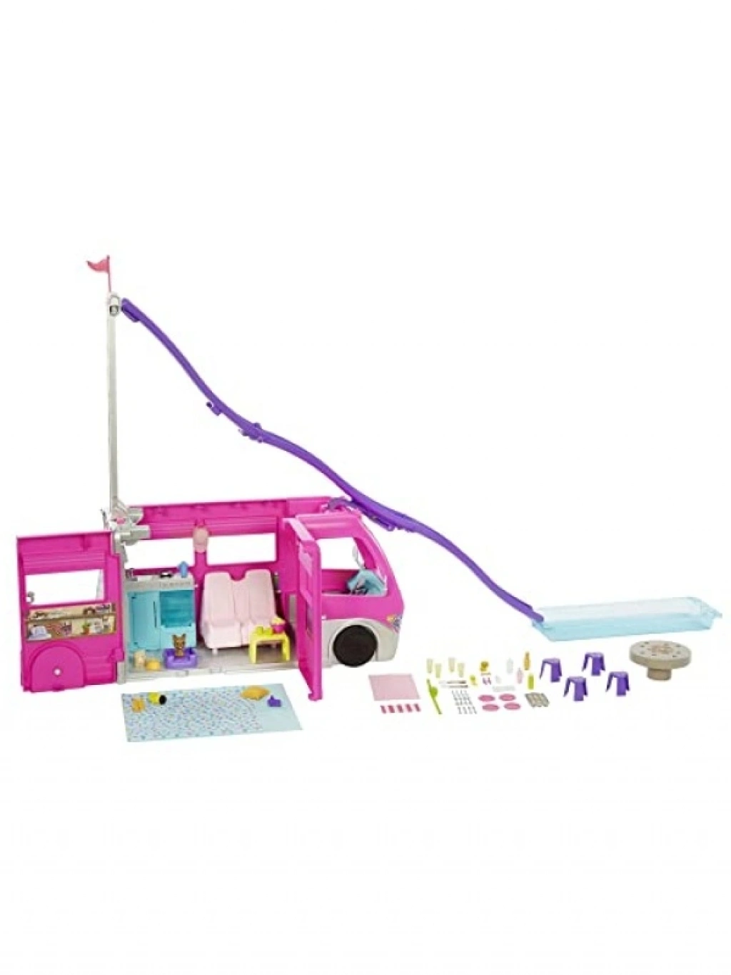 Bu rüya karavanı, çocukların hayal gücünü harekete geçiren birçok oyun alanı ve aksesuar ile doludur. Kamp yolculuğuna çıkmak için hazır olan karavan, kaydırak ve havuz gibi eğlenceli özellikler sunar. 60'tan fazla aksesuar ile macera dolu hikayeler yaratılabilir. Çocuklar, karavanı açarak mutfak, yemek alanı ve diğer oyun alanlarını keşfedebilirler.