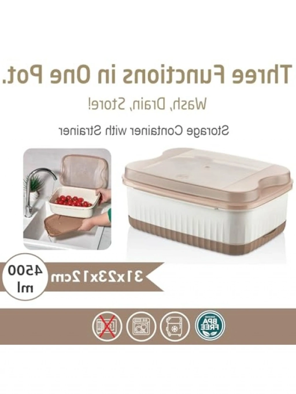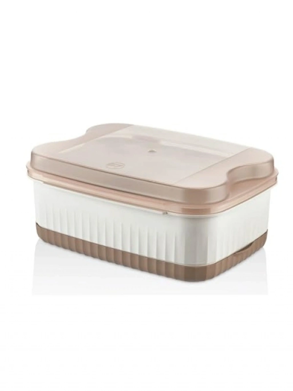 Rüya süzgeçli saklama kabı, 4500 ml hacmi ile geniş miktarda gıda saklama imkanı sunar. Modern tasarımı sayesinde hem mutfakta hem de depolama alanlarında şıklığı ve pratikliği bir araya getirir. Yüksek kaliteli malzeme kullanılarak üretilmiştir ve uzun ömürlüdür. Gıda saklama ihtiyacınızı karşılamak için idealdir.