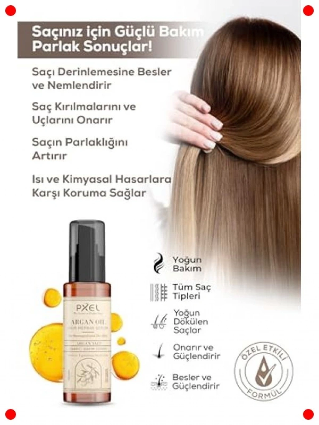 Yıpranmış, mat ve kabaran saçlar için özel olarak formüle edilmiş bu onarıcı saç serumu, saçlarınıza yoğun bir bakım sunar. Argan yağı ve Hindistan cevizi yağı gibi zengin doğal bileşenlerle güçlendirilmiş vegan formülü, saç tellerini derinlemesine besler ve onarır. Saçın kaybettiği nemi geri kazandırır, kırılmaları ve uçuşmaları azaltmaya yardımcı olur. Saçlarınıza anında parlaklık, yumuşaklık ve pürüzsüzlük katar. Hafif yapısıyla saçları ağırlaştırmaz, yağlı his bırakmaz. Düzenli kullanımda saçlarınızın daha sağlıklı, güçlü ve canlı görünmesini destekler. Güçlü ve göz alıcı saçlar için vazgeçilmez bir yardımcıdır.