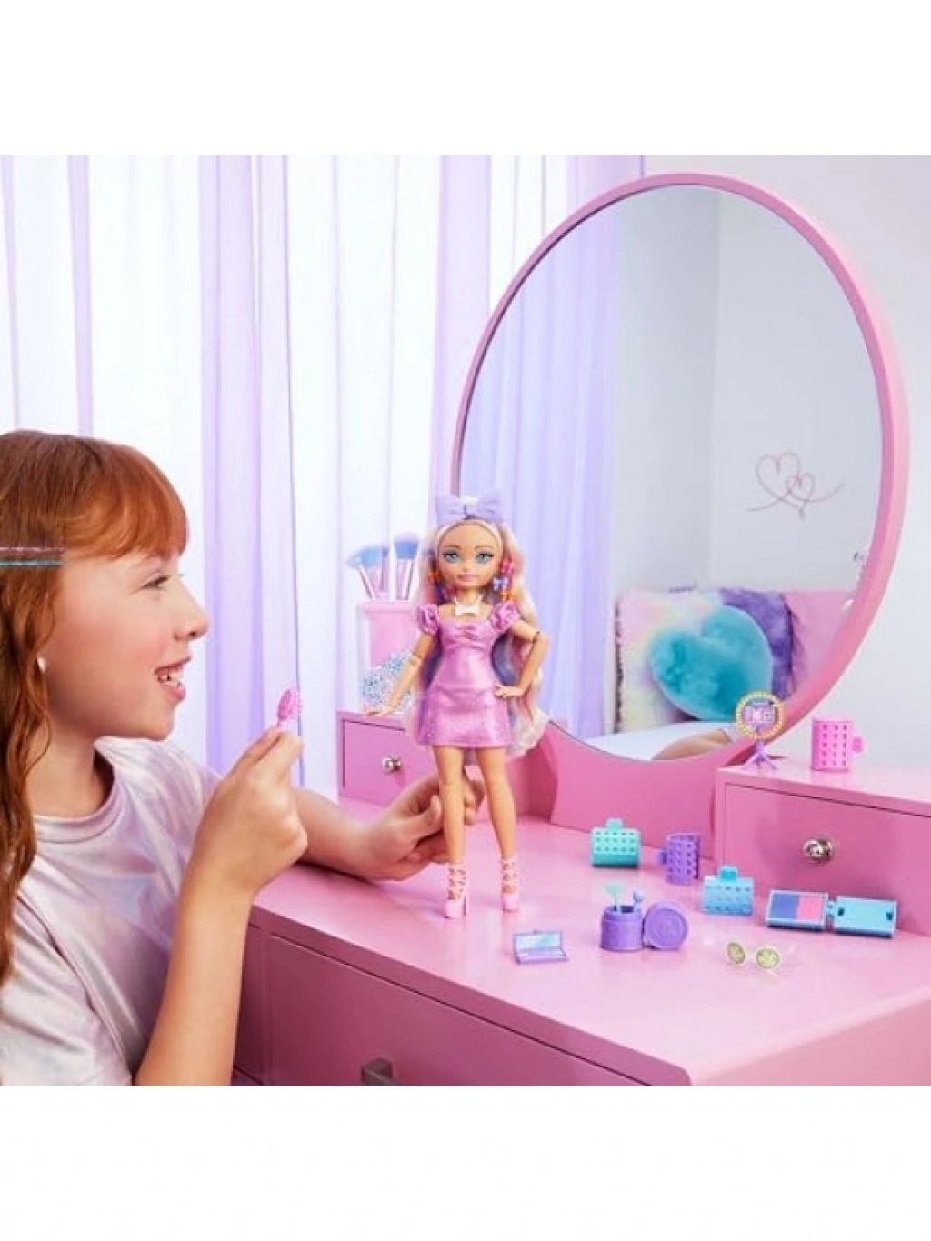 Bu bebek seti, çocukların moda ve makyaj eğlencesine katılmalarını teşvik eder. Şekillendirilmiş saçlı bebek, çeşitli saç aksesuarları ile birlikte gelir. Farklı stiller yaratmak için saç tebeşiri ve diğer aksesuarları kullanarak eğlenceli saatler geçirebilirsiniz. Çıkarılabilir kıyafetler ve aksesuarlarla birlikte sunulan bu set, çocukların hayal güçlerini geliştirmelerine yardımcı olurken, stil oluşturma becerilerini de destekler.