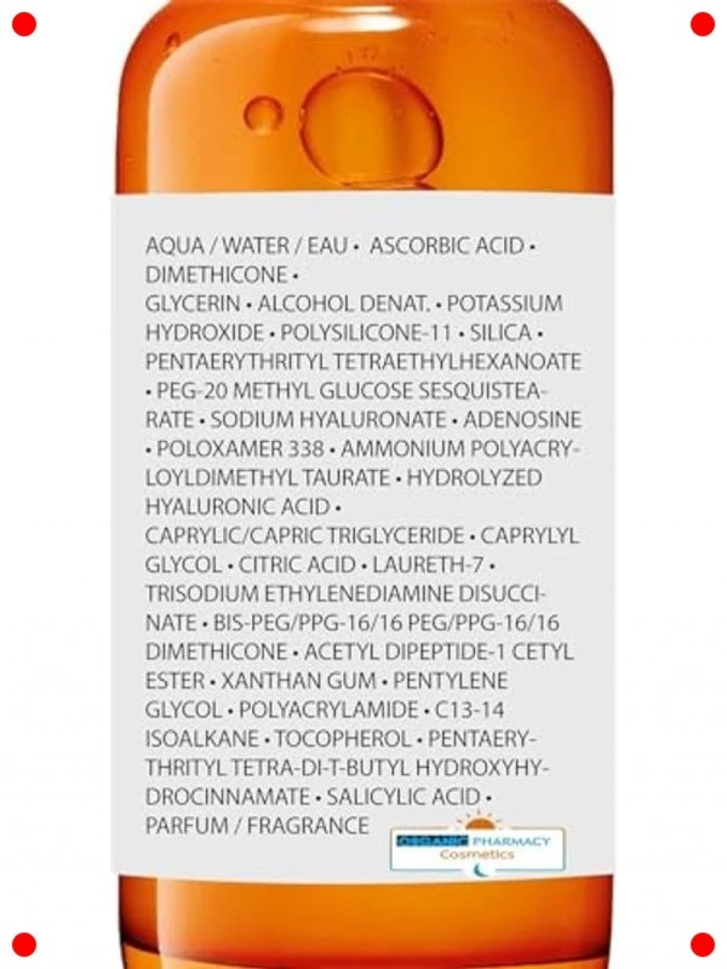 Cildinizin ışıltısını ortaya çıkaran ve onu güneşin zararlı etkilerinden koruyan bu saf C vitamini serumu ile tanışın. Yüksek konsantrasyonlu C vitamini, cilt tonunu eşitlemeye, koyu lekelerin görünümünü azaltmaya ve ince çizgi ile kırışıklıklara karşı savaşmaya yardımcı olur. Güçlü antioksidan özelliği sayesinde cildinizi serbest radikallere karşı korurken, kolajen üretimini destekleyerek daha sıkı ve elastik bir cilt vadediyor. SPF50 güneş koruma faktörü sayesinde, günlük olarak cildinizi UV ışınlarına karşı etkili bir şekilde korur. Hafif ve hızlı emilen formülü, cildinizde yağlı his bırakmaz. Günlük bakımınızın vazgeçilmezi olacak bu serum ile daha aydınlık, genç ve korunmuş bir cilde sahip olun.
