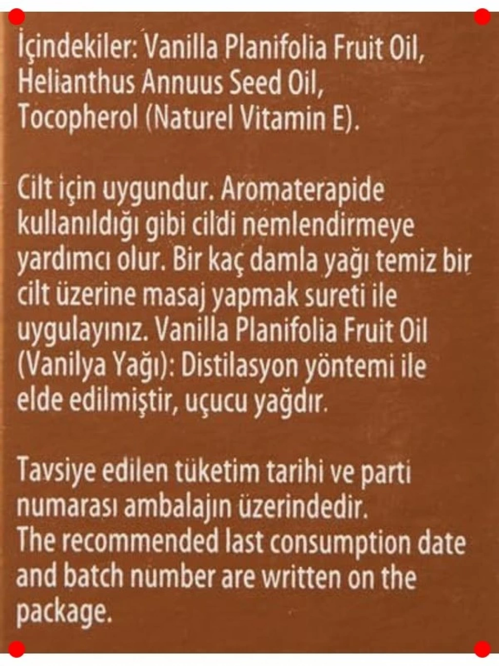Yoğun ve tatlı kokusuyla duyuları şımartan saf vanilya yağı, 20 ml'lik küçük şişesiyle doğal bir lüks sunuyor. Bu değerli yağ, aromaterapi seanslarınızda rahatlatıcı bir atmosfer yaratmak, masaj yağlarınıza hoş bir koku katmak veya ev yapımı kozmetik ürünlerinizi zenginleştirmek için idealdir. Sakinleştirici ve yatıştırıcı özellikleriyle bilinen vanilya, stresi azaltmaya ve ruh halini iyileştirmeye yardımcı olur. Cilt üzerinde nemlendirici ve besleyici bir etki bırakabilir. Katkısız ve saf yapısıyla güvenle kullanabileceğiniz bu vanilya yağı, yaşam alanlarınıza veya kişisel bakım rutininize sıcak ve davetkar bir dokunuş katacak.