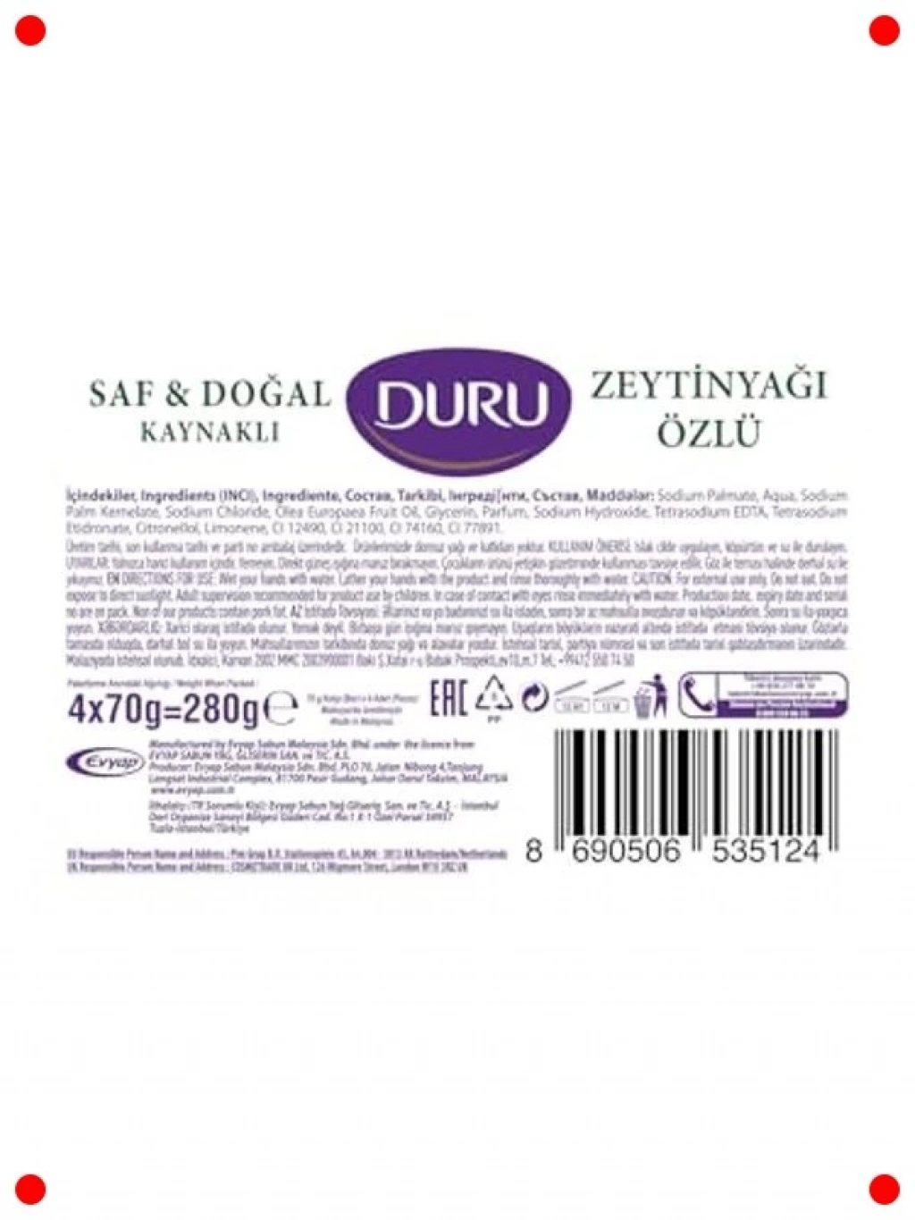 Emolyan özelliği ile cildinizi nazikçe temizleyen ve besleyen doğal zeytinyağlı sabun seti. Cildin doğal nem dengesini korumaya yardımcı olan bu sabunlar, dörtlü paketiyle ekonomik ve kullanışlı bir çözüm sunar. Her bir kalıp, gün boyu süren ferahlık ve yumuşak bir cilt hissi için özenle formüle edilmiştir. Kimyasal katkı maddesi içermeyen saf içeriği sayesinde hassas ciltler için de uygundur. Banyoda veya günlük el yıkamada kullanarak cildinize hak ettiği bakımı sağlayın. Doğallığın ve temizliğin keyfini yaşayın.