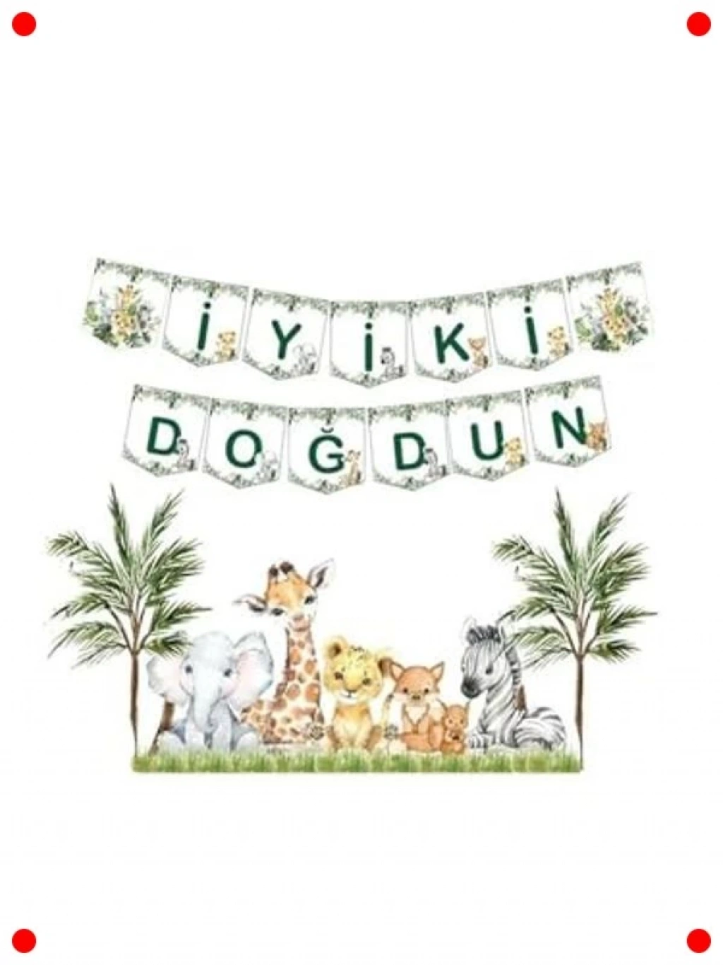 Özel günlerinizde unutulmaz bir atmosfer yaratmak için tasarlanmış bu safari temalı 'İyi Ki Doğdun' flama ile kutlamalarınıza neşe katın. Bebek hayvan figürleriyle süslenmiş bu sevimli banner, doğum günü partileri, bebek duşları veya diğer özel etkinlikler için mükemmel bir dekorasyon seçeneği sunar. Canlı renkleri ve eğlenceli tasarımıyla dikkat çekerken, ortamınıza sıcak ve davetkar bir hava katar. Kolayca asılabilir yapısı sayesinde hızlı ve pratik bir şekilde mekanınızı süsleyebilirsiniz. Her yaştan misafiri etkileyecek bu flama ile partileriniz çok daha özel olacak.