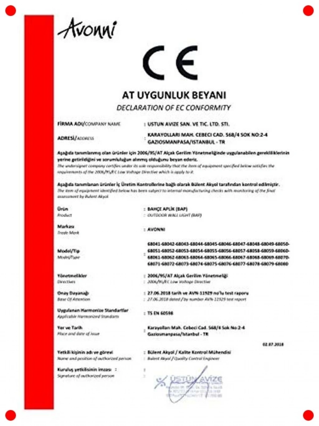 Dış mekanlarınıza canlı ve enerjik bir dokunuş katacak bu sarı elektrostatik toz boyalı aydınlatma armatürü, hem çarpıcı estetiği hem de üstün dayanıklılığı mükemmel bir şekilde birleştiriyor. Geniş E27 duy tipi sayesinde istediğiniz ampulü kolayca seçme özgürlüğü sunar. Sağlam alüminyum gövdesi ve güçlü döküm dip kısmı sayesinde darbelere ve her türlü zorlu hava koşullarına karşı yüksek direnç gösterir, uzun ömürlü kullanım vadeder. Polikarbon camı, kırılmaya karşı son derece dayanıklı olup, ışığı homojen ve etkili bir şekilde dağıtan bir yapıya sahiptir. 34x20cm ideal boyutlarıyla hem dikkat çekici hem de fonksiyonel bir aydınlatma sağlar. Bahçe yolları, teraslar veya girişler için mükemmel bir seçimdir.