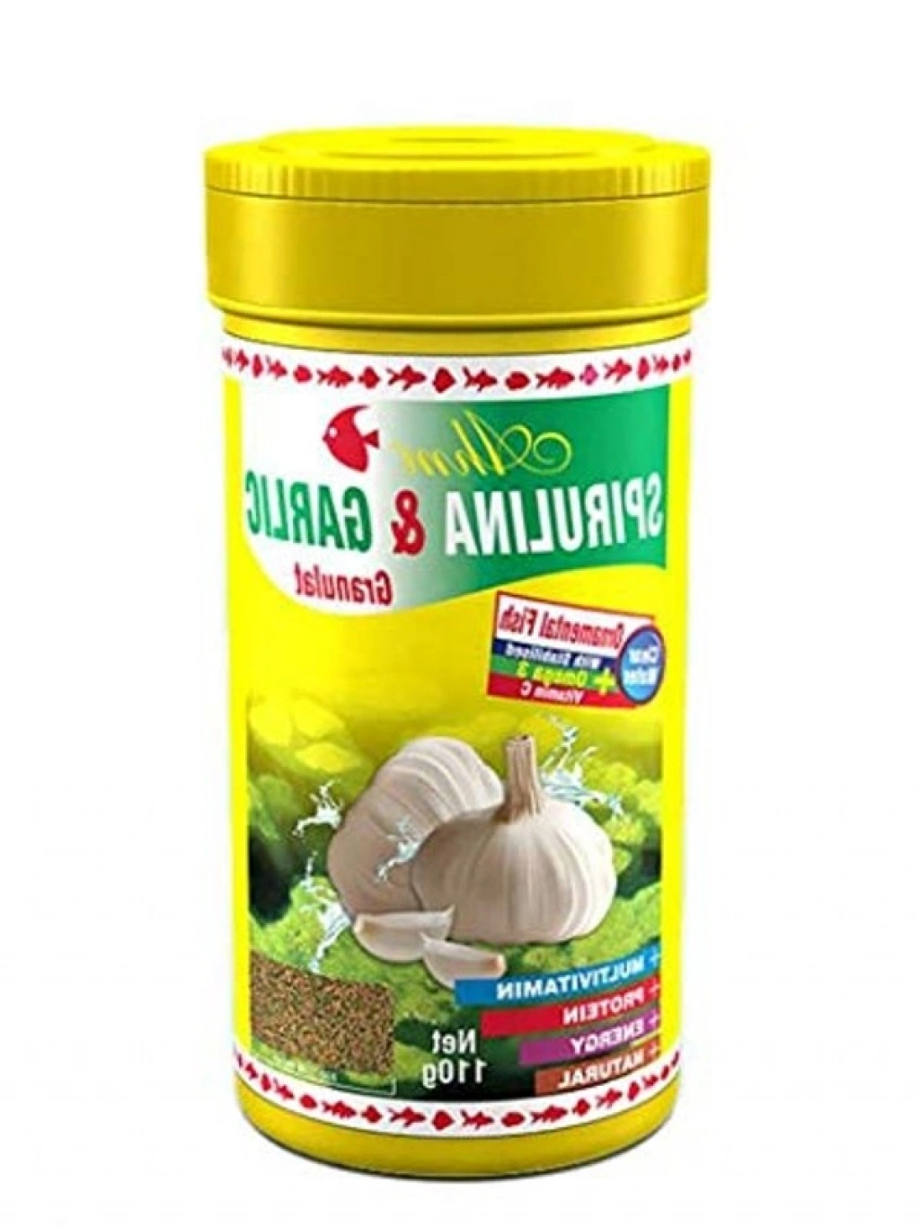 Spirulina içerikli sarımsaklı balık yemi, 100 ml'lik ambalajında yüksek kaliteli bileşenlerle formüle edilmiştir. Balık beslenme uzmanları tarafından hazırlanmış bu ürün, akvaryum balıklarınızın sağlıklı beslenmesine katkı sağlamak üzere geliştirilmiştir.