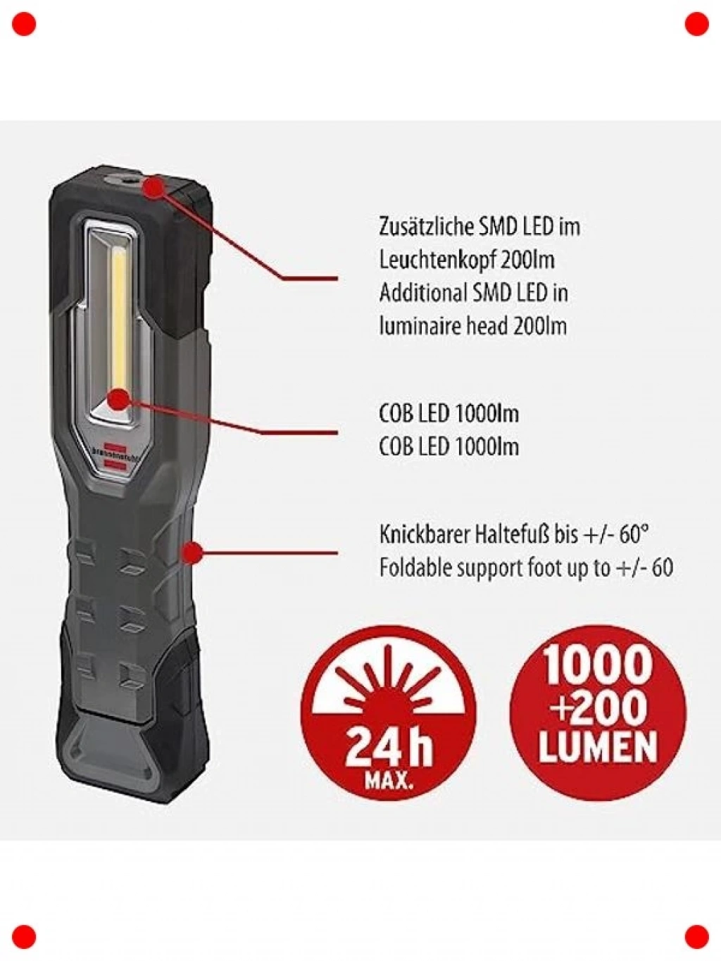 Geceleri gündüze çeviren güçlü bir ışık kaynağı! Bu şarj edilebilir LED fener, tam 1200 lümen parlaklığı ile geniş bir alanı etkili bir şekilde aydınlatır. IP54 sertifikası sayesinde suya ve toza karşı dayanıklı olup, en zorlu dış mekan koşullarında bile güvenle kullanılabilir. Dahili şarj edilebilir bataryası sayesinde pil derdine son verirken, uzun süreli kullanım imkanı sunar. Farklı ışık modları (yüksek, orta, düşük, flaş) ile her duruma uyum sağlar. İş yerinde, kampta, acil durumlarda veya evde kullanmak için mükemmeldir. Güvenilir ve çevre dostu bir aydınlatma çözümüdür.