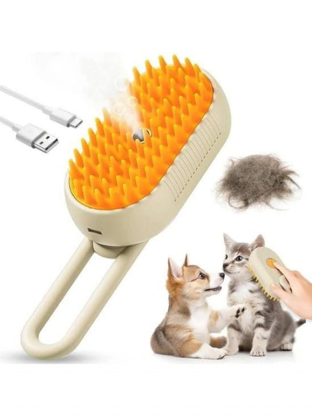 Şarjlı buharlı tarak, evcil hayvanlarınızın tüylerini nazikçe açarak temizler. Buhar teknolojisi sayesinde tüy düğümlerini önlerken, masaj etkisi ile cilt sağlığını destekler. Kablosuz kullanımı ile evde, seyahatte ya da dış mekanda rahatlıkla kullanılabilir. Hassas ciltler için özel olarak tasarlanmış bu tarak, tüy dökümünü azaltarak evdeki temizliği kolaylaştırır.