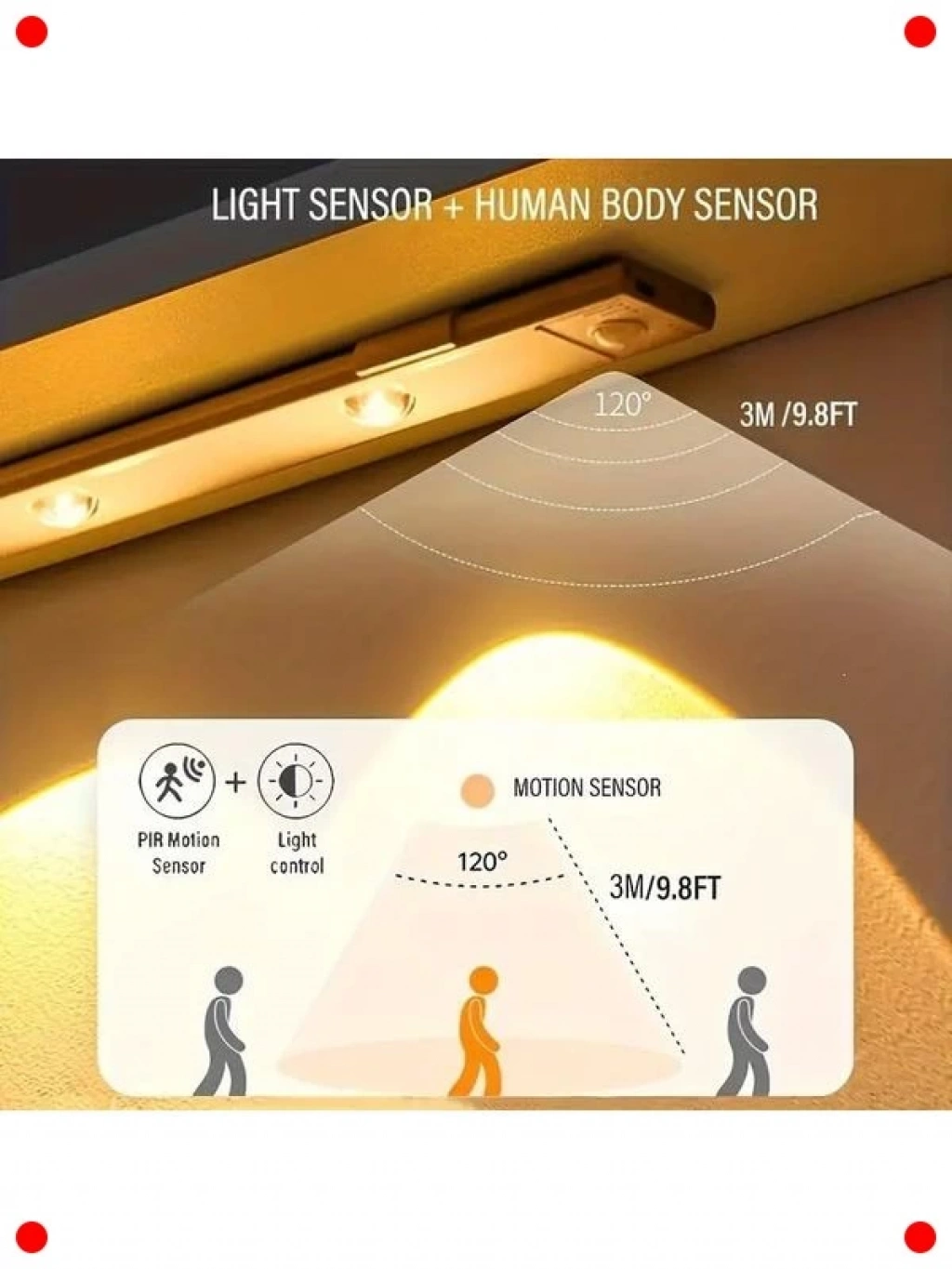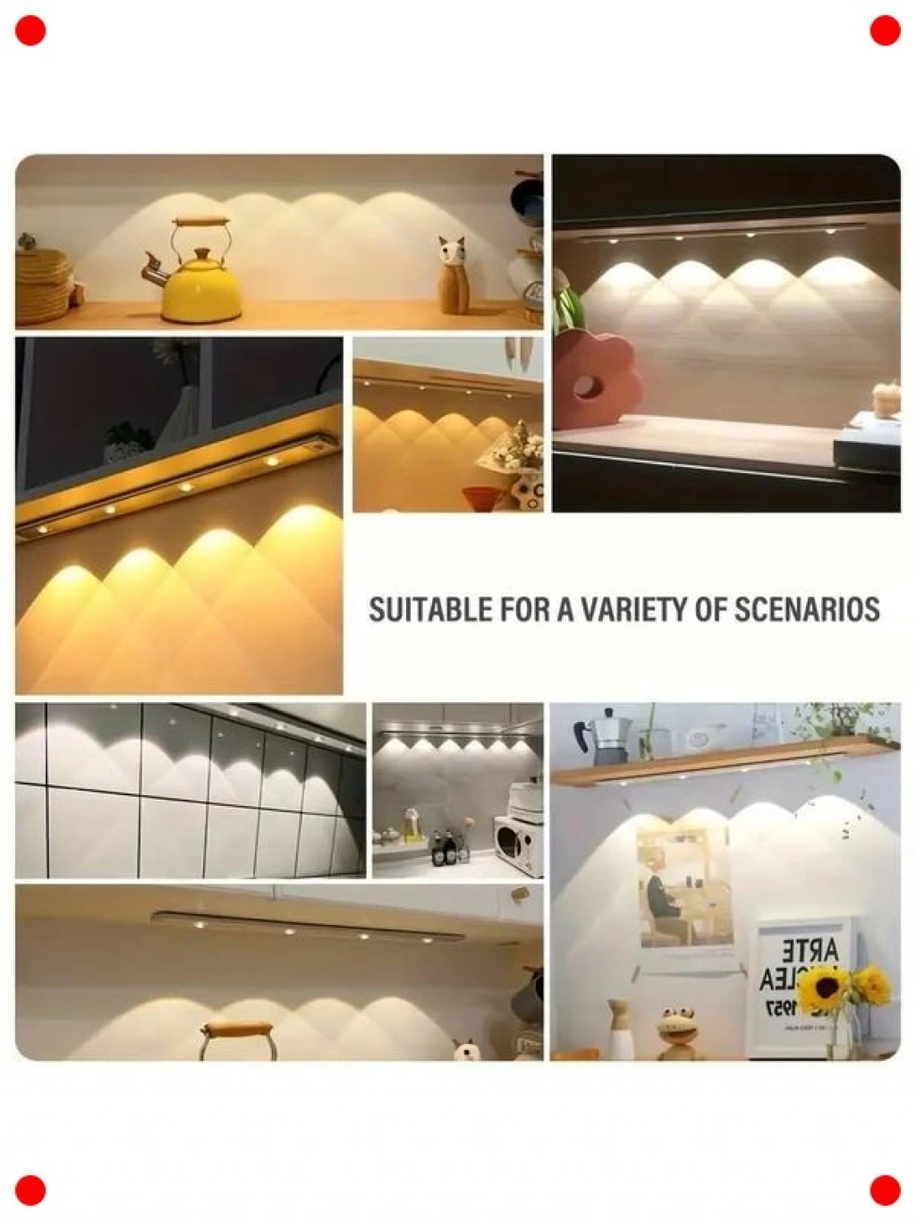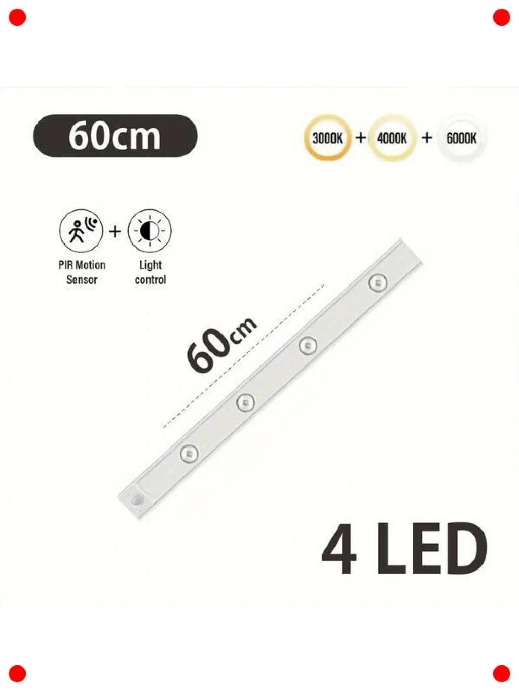 Evinizin her köşesine pratik ve enerji verimli aydınlatma getiren bu 60cm şarjlı LED şerit, gelişmiş hareket sensörüyle konfor sunar. İki farklı modu bulunur: hareket sensörüyle otomatik açılma veya sürekli aydınlatma. Ayarlanabilir 3 farklı ışık rengi (sıcak, doğal, soğuk beyaz) sayesinde ruh halinize veya ihtiyacınıza uygun atmosferi yaratabilirsiniz. Şarj edilebilir özelliği sayesinde kablo karmaşası olmadan kolayca monte edilir. Yatak odası, banyo, mutfak, gardırop veya çalışma odasında anında aydınlatma sağlar. Kolay kurulumu ve çok yönlü kullanımıyla evinizin aydınlatmasını bir üst seviyeye taşır.