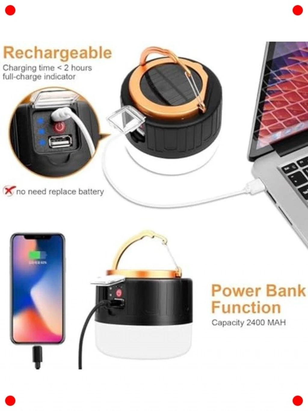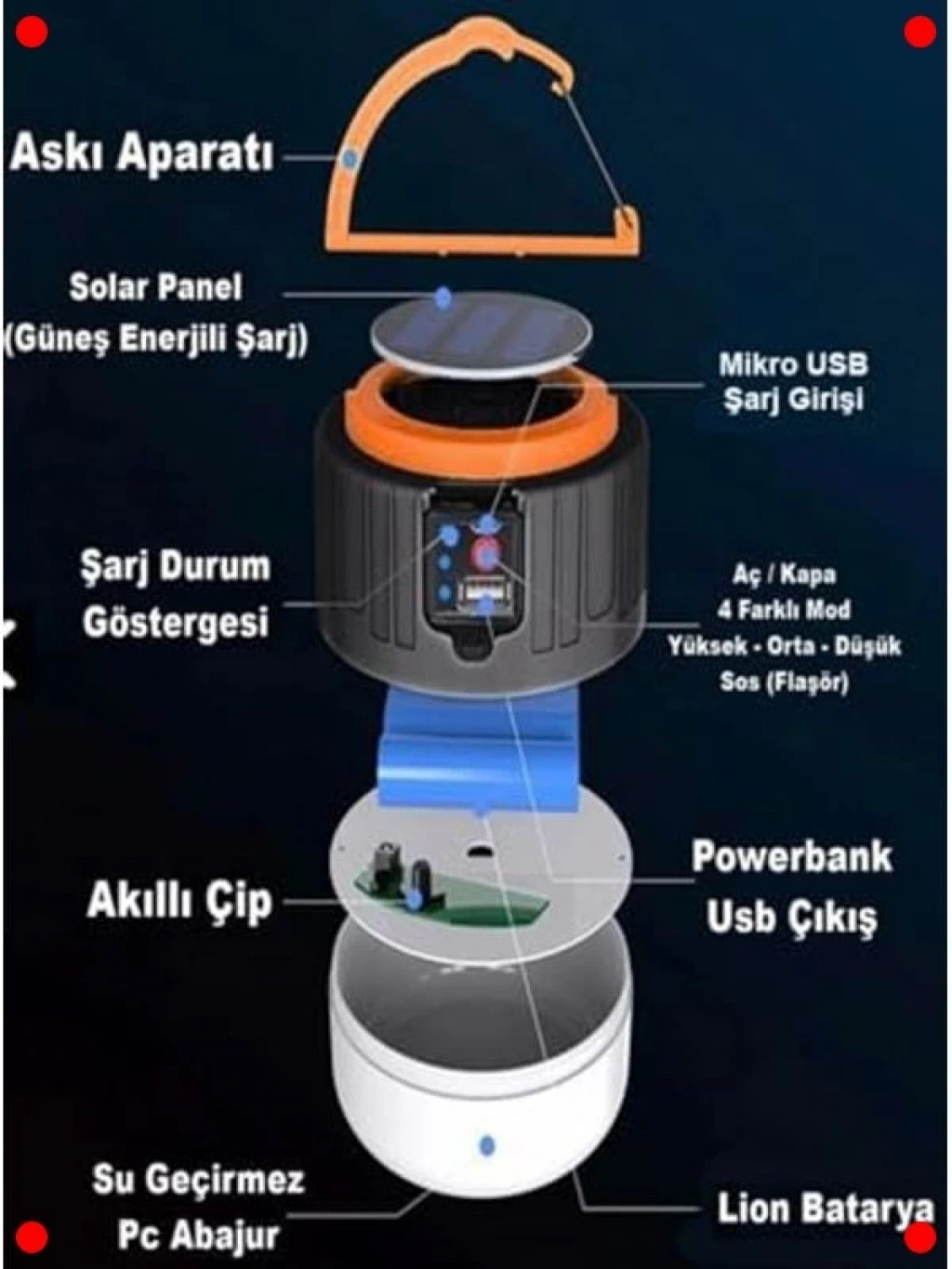 Doğada ve acil durumlarda yanınızdan ayırmak istemeyeceğiniz bu şarjlı solar kamp feneri ile karanlıkta asla kalmayın. Hem güneş enerjisiyle hem de USB kablosuyla şarj edilebilir özelliği sayesinde enerji kaynakları kısıtlı olduğunda bile sürekli aydınlatma sağlar. Parlak beyaz ışığı geniş bir alanı aydınlatır, kamp alanınızda veya çadırınızda konforlu bir atmosfer yaratır. Hafif ve kompakt tasarımı sayesinde kolayca taşınabilir. Dayanıklı yapısı dış mekan koşullarına karşı dirençlidir. Kampçılık, doğa yürüyüşleri, balıkçılık veya elektrik kesintileri için mükemmel bir çözümdür.