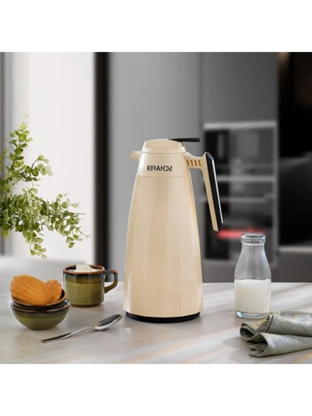 1,5 litrelik kapasiteli termos, krem rengiyle şık bir görünüm sunarken, sıcak ve soğuk içeceklerinizi uzun süre korur. Kullanışlı tasarımı sayesinde her zaman yanınızda taşıyabilir, piknik veya seyahatlerinizde vazgeçilmez bir yardımcı haline getirebilirsiniz.