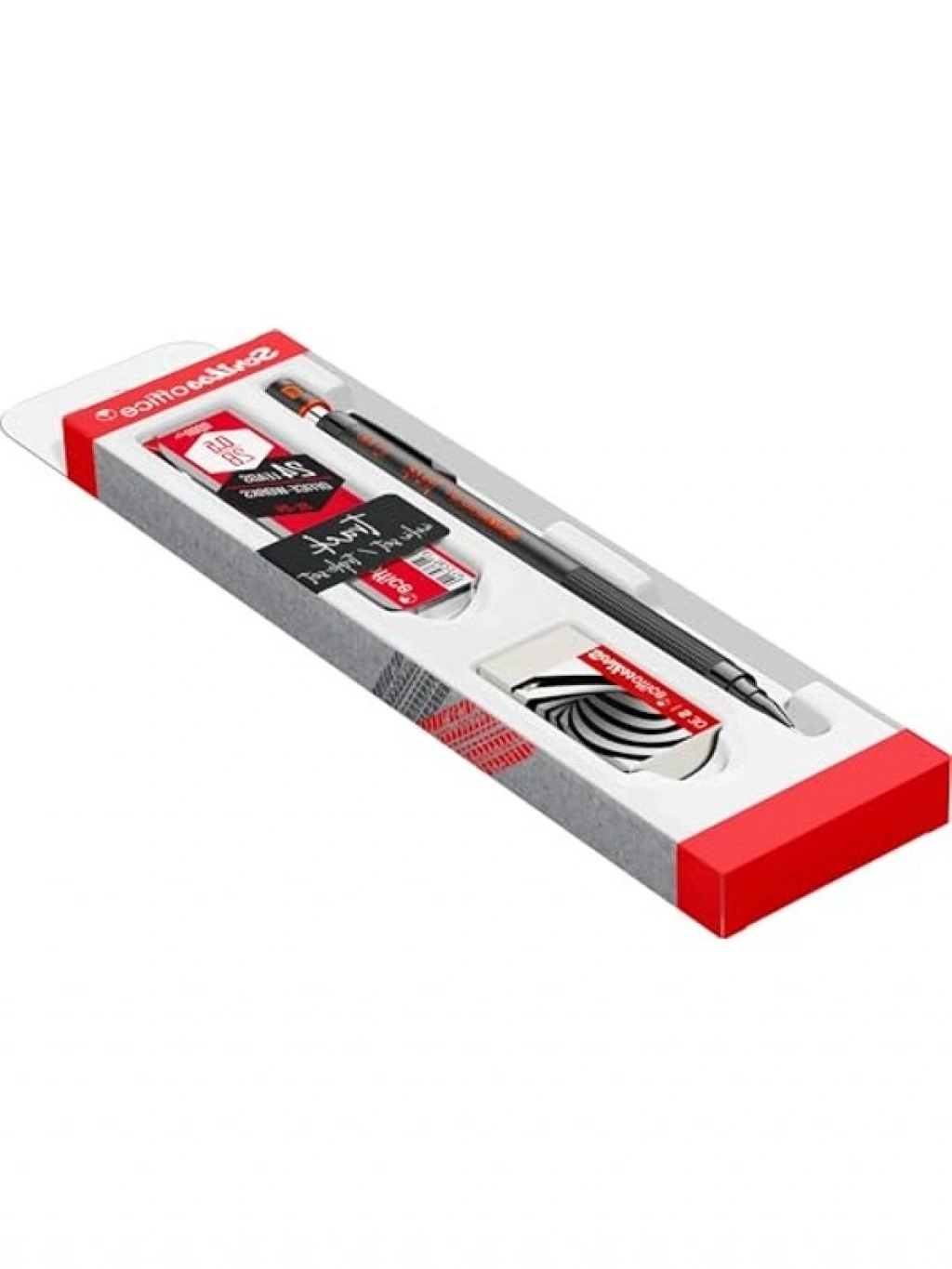 Track 3'lü set, bir mekanik kurşun kalem, bir silgi ve bir yedek uç içerir. Siyah metal klips, akrilik tepesi ve tükenmez mekanizması ile yazım konforu sağlar. Geri çekilebilir uç mekanizması, pratiklik ve kolaylık sunarak günlük kullanımda büyük kolaylık sağlar.