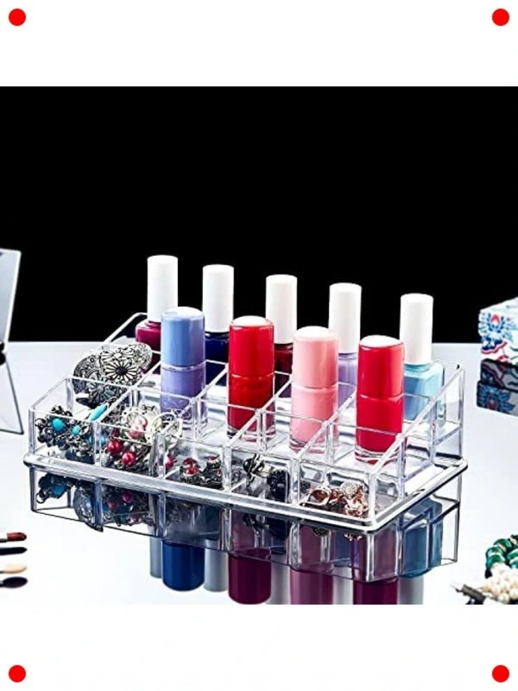 Makyaj masanızı veya banyonuzu düzenli tutmanızı sağlayacak bu şeff akrilik düzenleyici, 15 ayrı gözüyle koleksiyonunuzu sergilemek için mükemmel bir çözümdür. Dayanıklı ve kaliteli akrilik malzemeden üretilştir, bu sayede uzun süreli kullanım sunar. Şeff yapısı sayesinde lerinizi kolayca görebilir ve istediğiniz rengi anında bulabilirsiniz. Sadece ler için değil, aynı zamanda küçük kozmetik ürünleri, aksesuarlar veya takılar gibi diğer küçük eşyalarınızı düzenlemek için de kullanılabilir. Şık ve modern tasarımıyla her türlü dekorasyona uyum sağlar, alanınızı verimli kullanmanıza yardımcı olur.