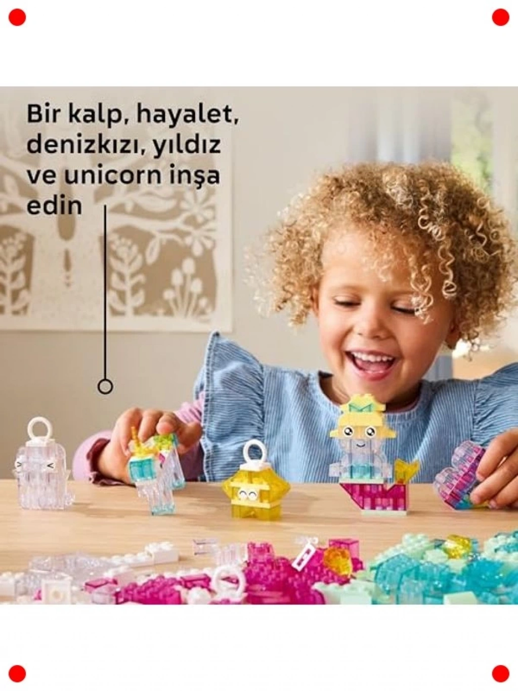 Sınırsız yaratıcılık için tasarlanmış bu 340 parçalık yapım seti ile hayal gücünüzü serbest bırakın! Şeffaf saklama kutusu, tüm parçaları düzenli tutarken aynı zamanda içeriği kolayca görmeyi sağlar. Çeşitli renklerdeki standart parçaların yanı sıra, şeffaf özel parçalar ve mini figürler içerir. Bu sayede çocuklar kendi dünyalarını, karakterlerini ve hikayelerini özgürce oluşturabilirler. 5 yaş ve üzeri çocuklar için ideal olup, ince motor becerilerini, problem çözme yeteneğini ve uzamsal algıyı geliştirir. Sonsuz eğlence ve öğrenme için mükemmel bir hediye.