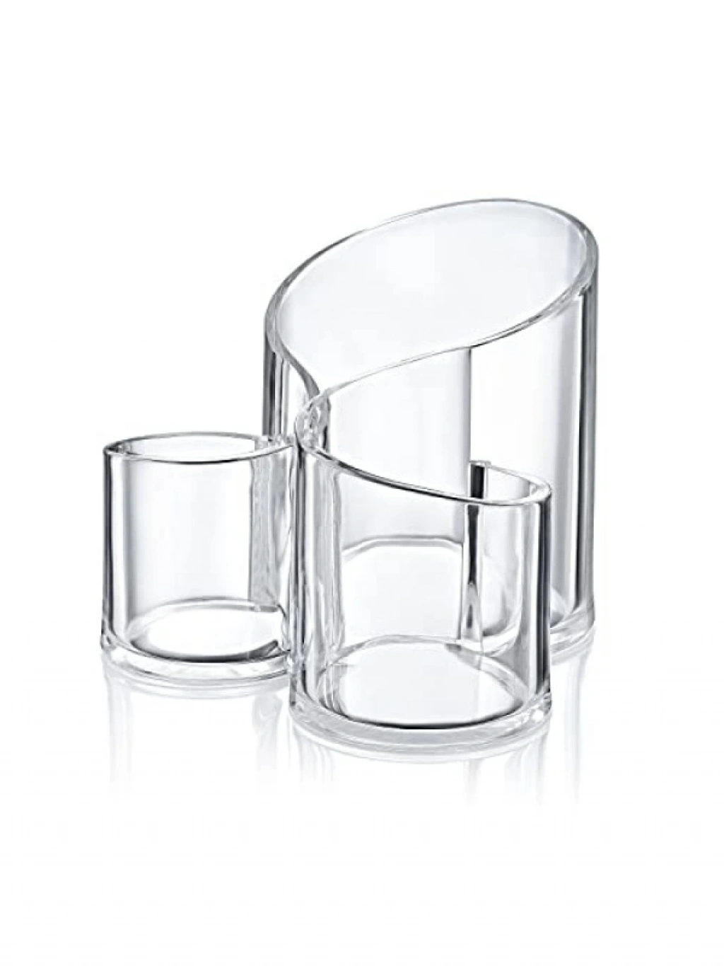 Yüksek kaliteli akrilik malzemeden üretilmiş olan bu şeffaf üç gözlü organizer, ofis, ev ya da çalışma alanlarınızda düzen sağlamak için idealdir. 14.5x14.5x12 cm boyutlarıyla her alana kolayca uyum sağlar. Hafif yapısıyla (225 gr) taşınması son derece kolaydır. Kırtasiye malzemeleri, makyaj ürünleri veya küçük eşyalar için mükemmel bir depolama çözümü sunar.