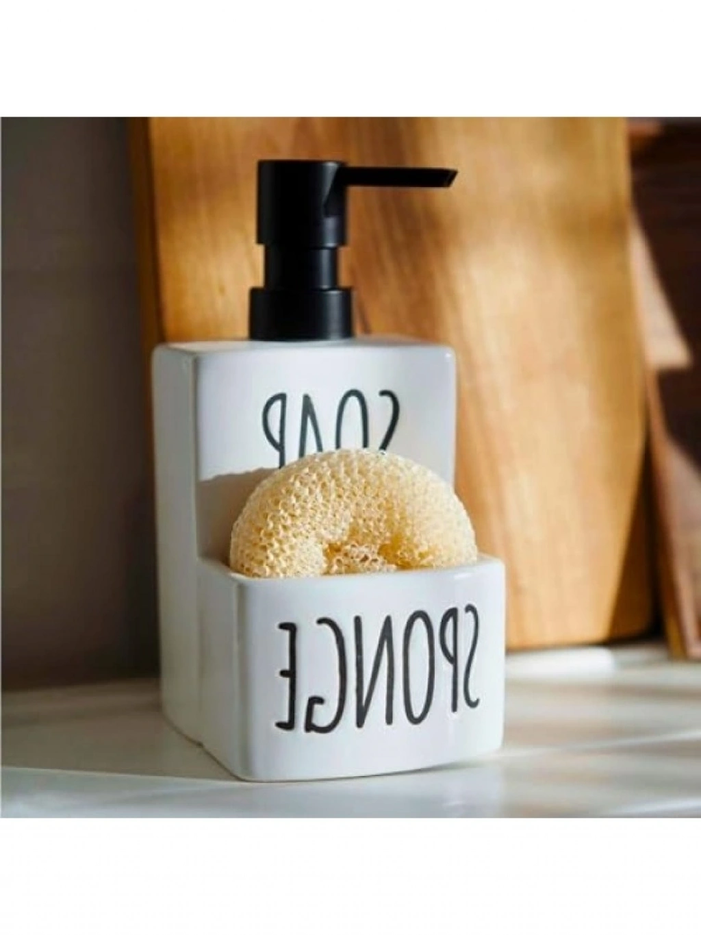 Modern banyo dekoruna uyum sağlayan beyaz seramik sabunluk ve süngerlik seti, 17 x 9 cm boyutlarıyla kompakt bir kullanım sunar. Sıvı sabun pompası ve sünger bölmesi ile pratik bir tasarım sunarak düzenli bir görünüm sağlar. Dayanıklı seramik yapısı sayesinde uzun ömürlü bir kullanım imkanı sunar.
