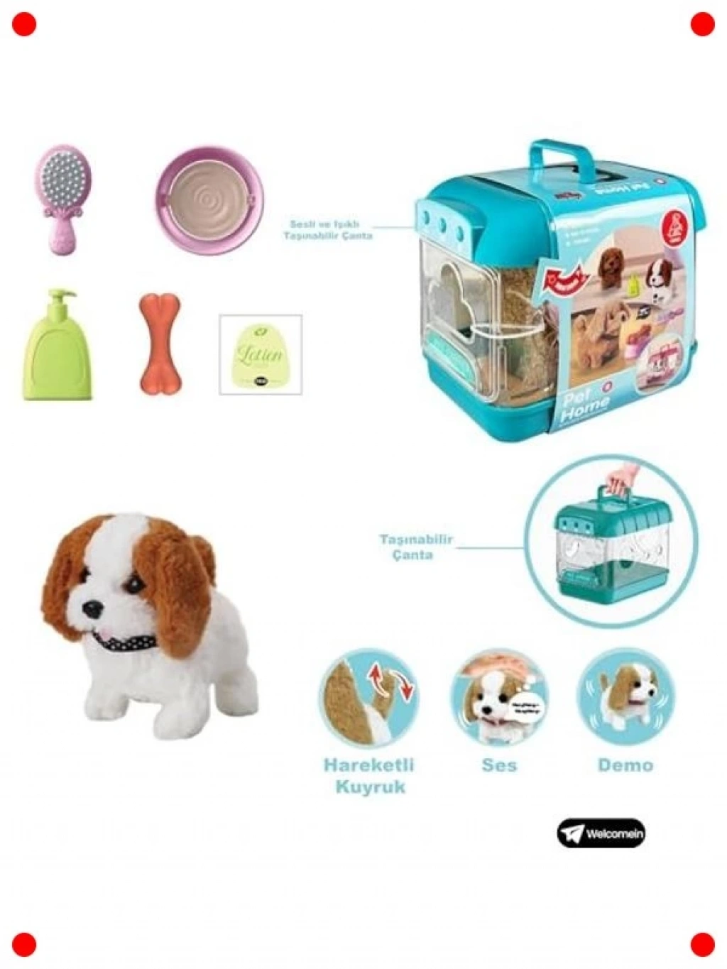 Çocukların evcil hayvan sevgisini ve sorumluluk bilincini geliştirmek için tasarlanmış bu sesli, ışıklı ve yürüyen köpek oyuncağı seti ile eğlence dolu anlar yaşayın. Şirin köpeğiniz gerçekçi sesler çıkarır, ışık saçar ve yürür, böylece çocuklar gerçek bir evcil hayvanla oynuyormuş gibi hissederler. Taşınabilir çantası sayesinde köpeği istedikleri yere götürebilir ve aksesuarlarla bakımını yapabilirler. Empati ve hayal gücünü geliştiren bu set, çocuklara sorumluluk almayı öğretirken keyifli vakit geçirmelerini sağlar. Piller dahildir, böylece kutudan çıkar çıkmaz oynamaya başlayabilirsiniz.