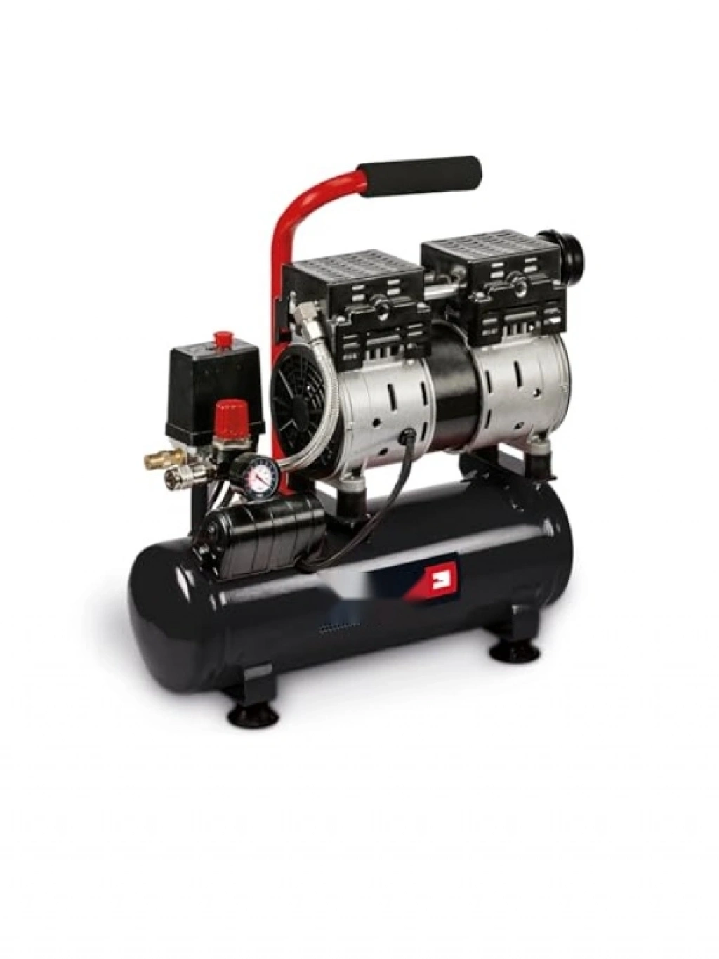 Bu sessiz kompresör, 550 W gücü ve 6 litre kapasitesi ile garaj ve atölyeler için mükemmel bir yardımcıdır. 57dB'den daha az gürültü çıkartarak, çalışma alanınızı rahatsız etmez. Yağsız ve servis gerektirmeyen motoru ile bakım ihtiyacını minimuma indirir. Maksimum 8 bara kadar basınç sunan bu kompresör, çeşitli uygulamalar için idealdir. Hafif yapısı ile kolay taşınabilir, ayrıca emniyet valfi ile kullanıcı güvenliğini artırır. Titreşim emici ayakları sayesinde stabil bir kullanım sağlar.