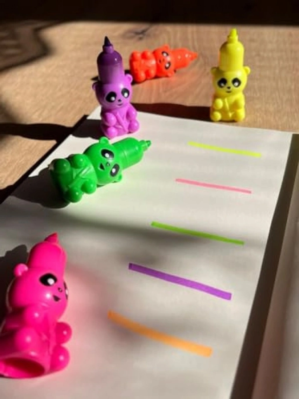 Bu sevimli panda şeklindeki fosforlu kalem seti, 5 farklı renk seçeneği sunarak yazma ve çizimlerinize eğlenceli bir dokunuş katmaktadır. Her yaştan kullanıcının beğenisini kazanacak bu kalemler, hem okul hem de ofis için ideal bir seçenek sunar. Renkli ve eğlenceli tasarımıyla çalışma alanınıza neşe katın!