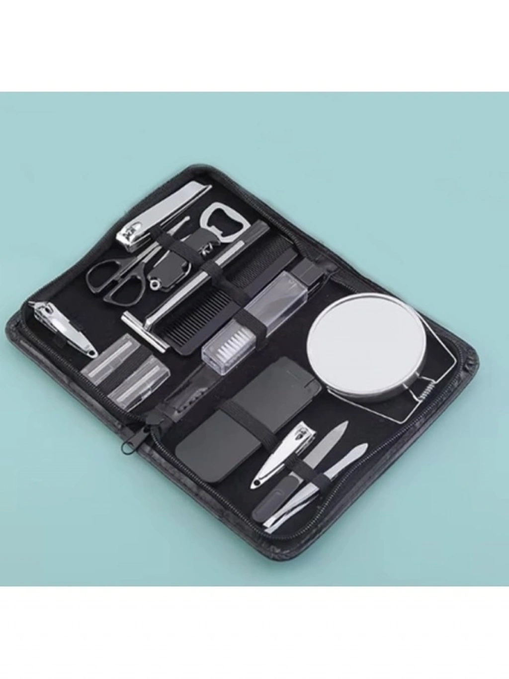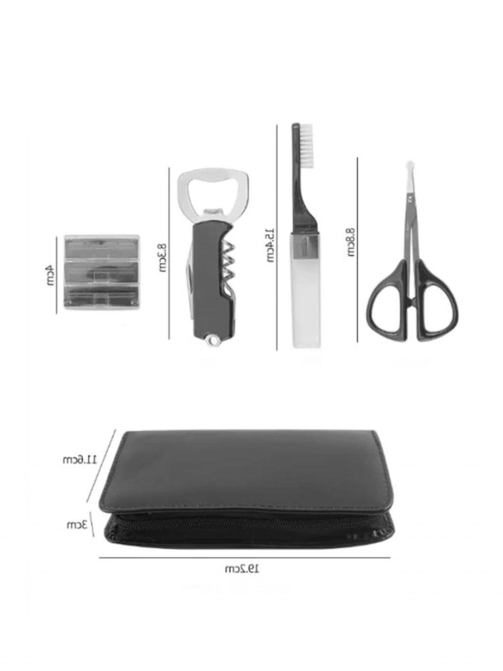 Kompakt tasarımı ile 13 parçalı bu seyahat boy manikür-pedikür seti, tüm kişisel bakım ihtiyaçlarınızı karşılar. Şık siyah deri çantası içerisinde tırnak makası, cımbız, ayna, törpü, jilet ve makas gibi profesyonel araçlar bulunur. 19.2 x 11.6 x 3 cm boyutları ile seyahatlerinizde yanınızda taşımanız oldukça kolaydır. Düzenli saklama imkanı sunan fermuarlı çantası ile her alet için özel bölmeler mevcuttur.