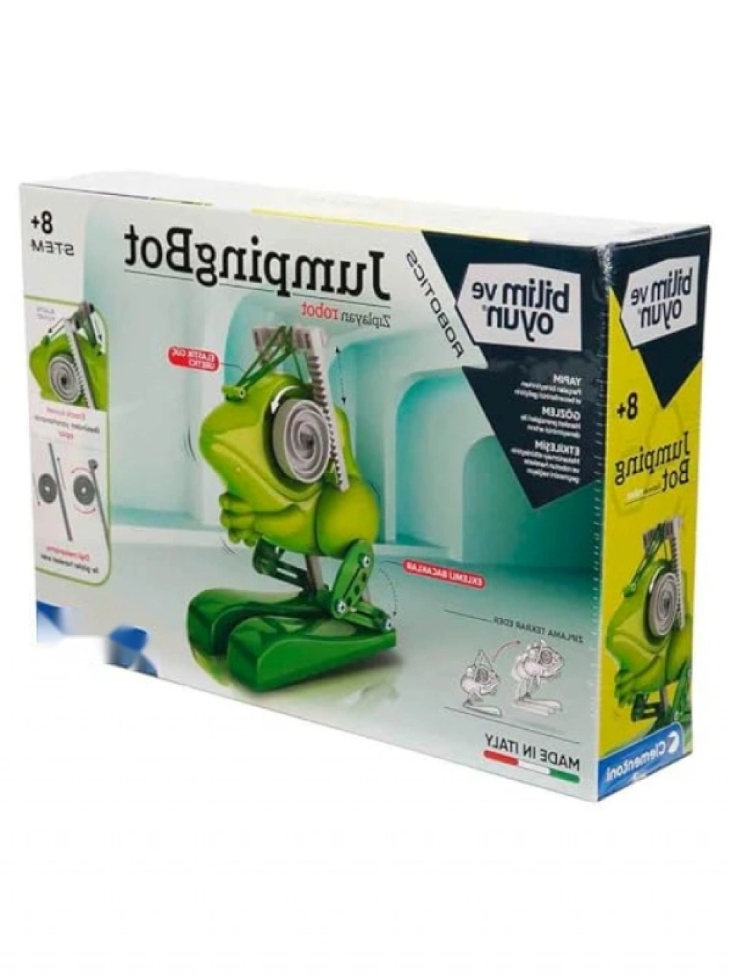Bu eğlenceli robotik laboratuvar seti, çocukların mühendislik ve robot teknolojisi ile tanışmalarını sağlar. Sıçrayan kurbağa tasarımı ile dikkat çeken bu robot, motoru aktive edildiğinde gerçekten sıçrar. 8 yaş ve üzeri çocuklar için uygun olan bu set, yaratıcı düşünmeyi teşvik ederken, eğlenceli bir öğrenme deneyimi sunar. Robotun gözleri dönebilir ve spiral optik efektler yaratabilir, böylece çocukların hayal gücünü canlandırır. İtalya'da üretilmiş olan bu yüksek kaliteli set, uzun ömürlü ve dayanıklıdır.