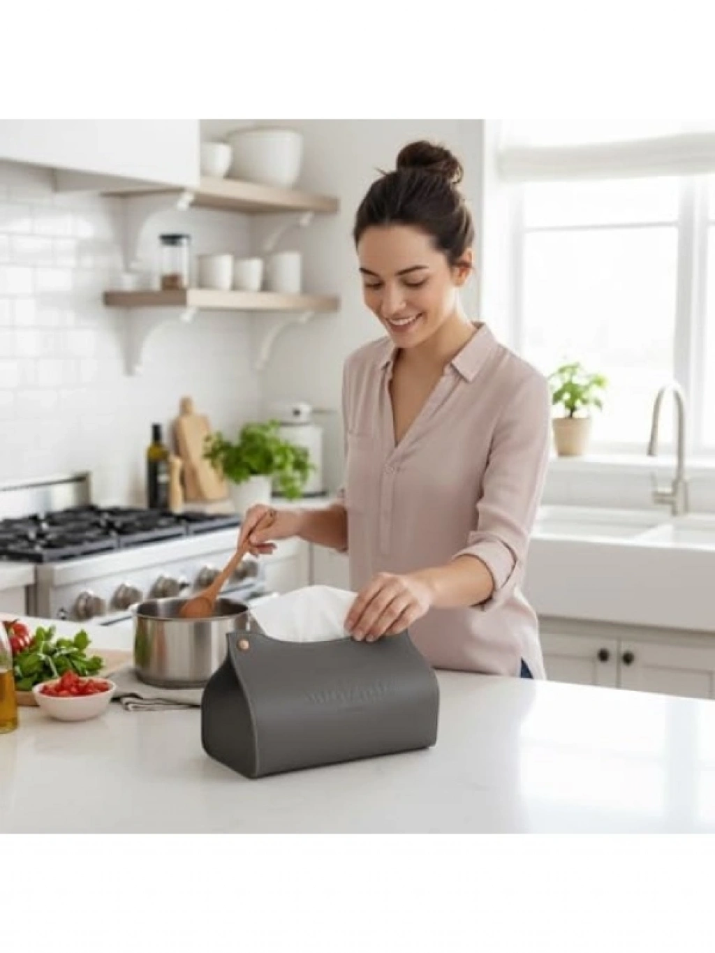 Modern ve zarif tasarımıyla dikkat çeken bu masa üstü peçetelik, her dekorasyona uyum sağlar. Silinebilir suni deri kaplaması sayesinde leke tutmaz ve kolayca temizlenebilir. Peçeteleri düzenli ve hijyenik bir şekilde saklar; mutfak, yemek masası, banyo ve ofis gibi birçok alanda kullanılabilir. Hafif yapısı ile kolayca taşınabilir ve profesyonel sunumlar için ideal bir dekoratif unsurdur.