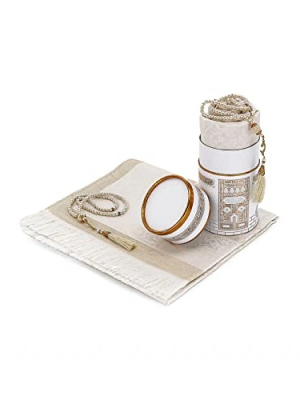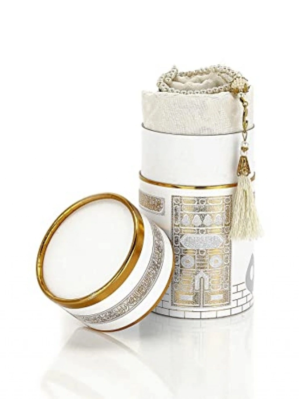 Bu seccade seti, kullanışlı ve pratik bir çözüm sunar. Silindir kutu tasarımı ile taşıması kolaydır. Yüksek kaliteli malzemeden üretilmiştir ve uzun ömürlü kullanım sağlar. Şık görünümü ile her ortamda rahatlıkla kullanılabilir.