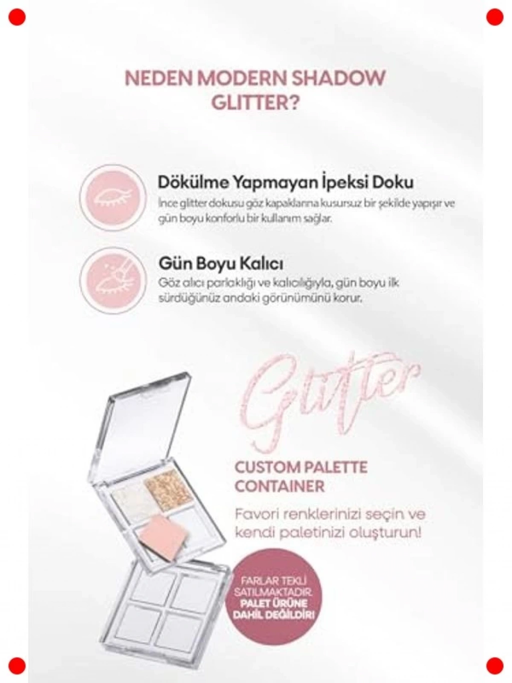 Gözlerinize ışıltılı bir dokunuş katmak için tasarlanmış kalıcı simli tekli far. 304 numaralı bu ton, göz kapaklarınızda canlı ve parlak bir etki yaratır. Özel formülü sayesinde topaklanma yapmaz ve gün boyu kalıcılığını korur. İpeksi dokusu sayesinde kolayca uygulanır ve dağılır, farklı makyaj stilleri için idealdir. İster tek başına ister diğer farlarla kombinleyerek kullanabileceğiniz bu ürün, göz makyajınıza derinlik ve ışıltı katar. Özel günlerde veya günlük makyajınızda fark yaratmak isteyenler için mükemmel bir seçenektir.